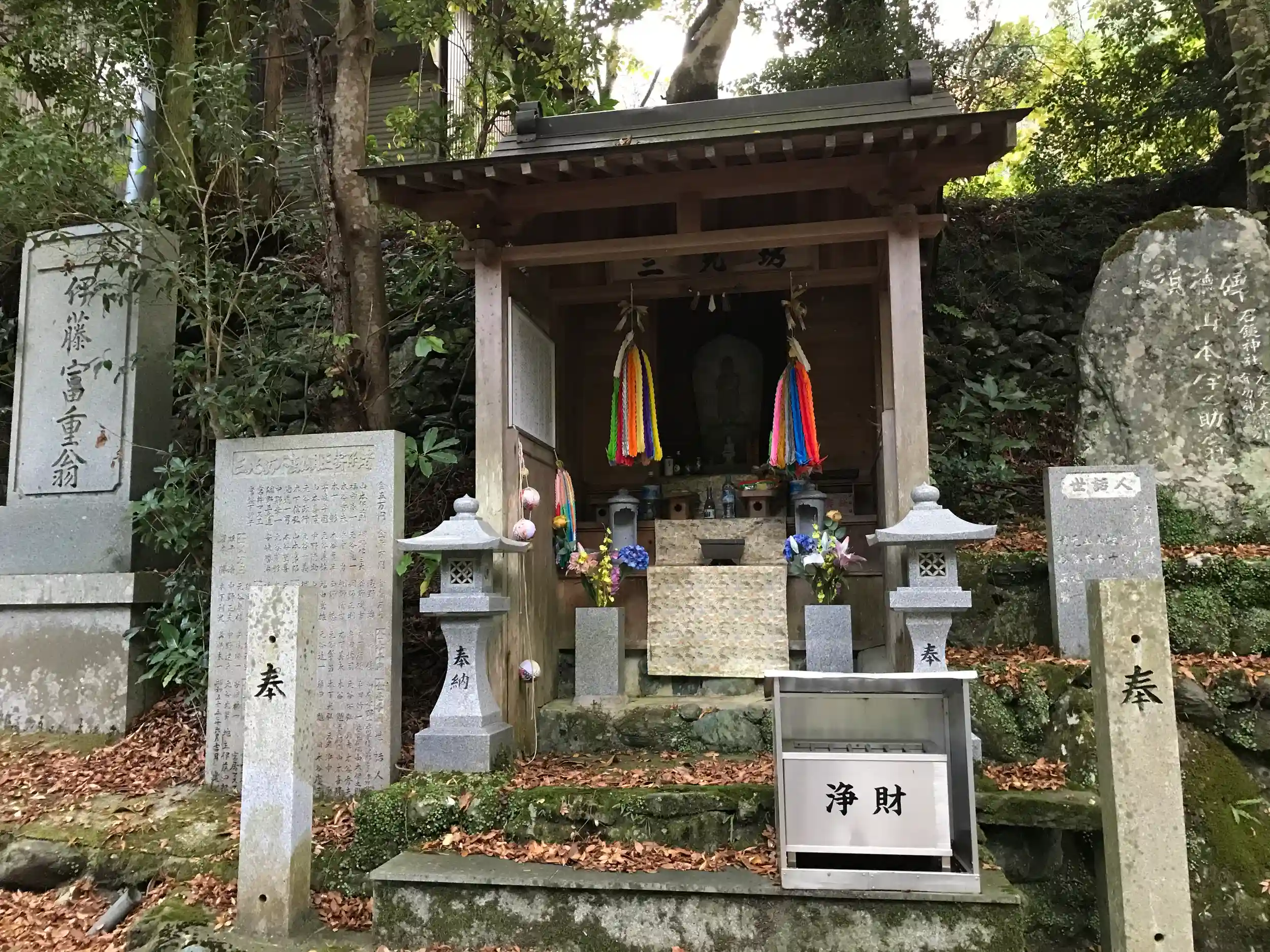駐車場からロープウエイ乗り場へ向かう途中には水行堂、法起坊堂(天狗堂)、三光坊、行者堂(四国別格20霊場9番文殊院別院)等の諸堂が建ち修験道っぽい雰囲気を出している。