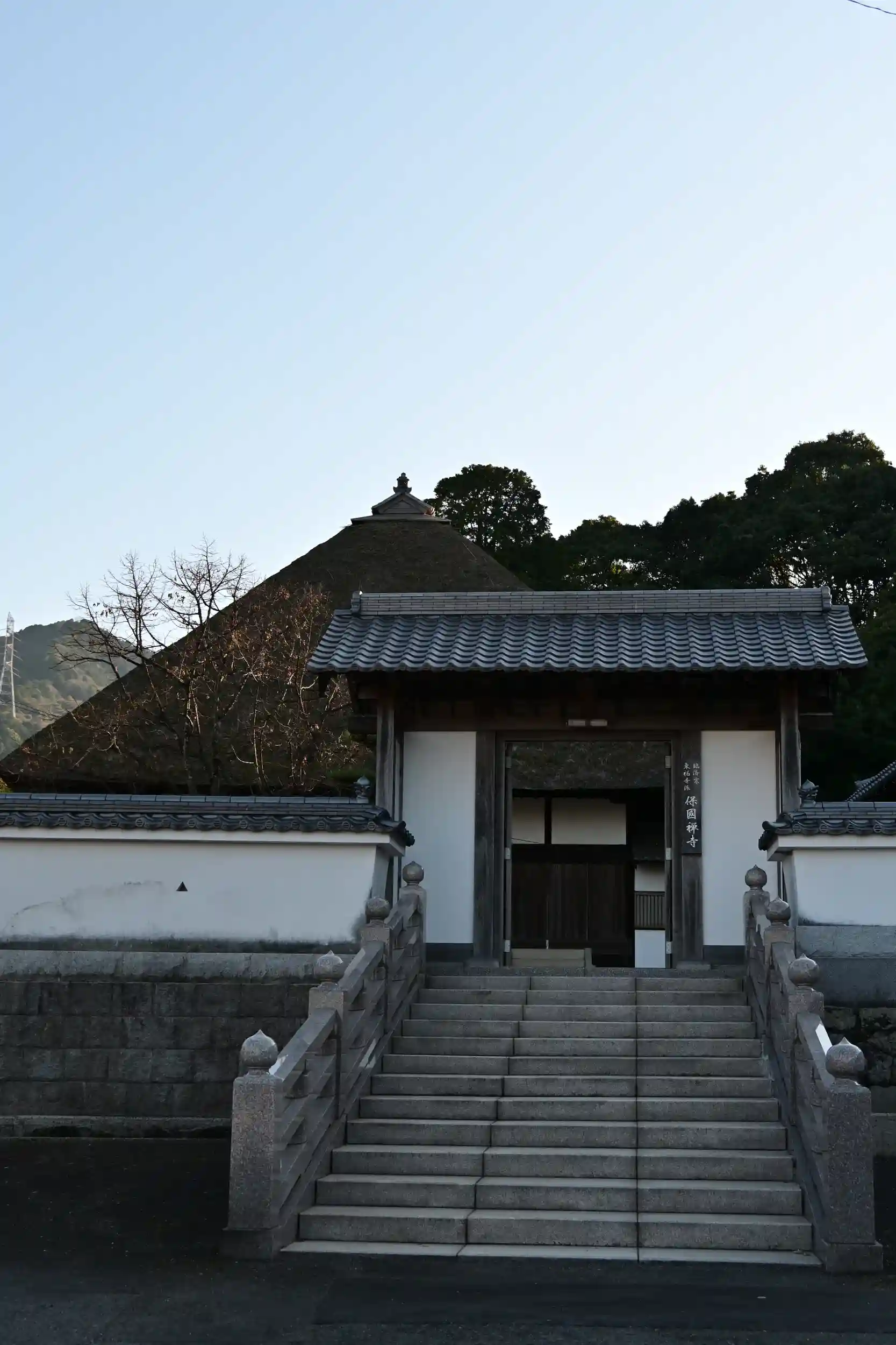 保国寺は、愛媛県西条市中野、西条祭りで有名な伊曽乃神社の近くに位置します。寺は、奈良時代の727(神亀4)年に第45代 聖武天皇(在位:724-749)の勅願により創建されたと伝わります。建治年間(1275-1278)癡兀大慧によって天台宗から臨済宗に改められました。