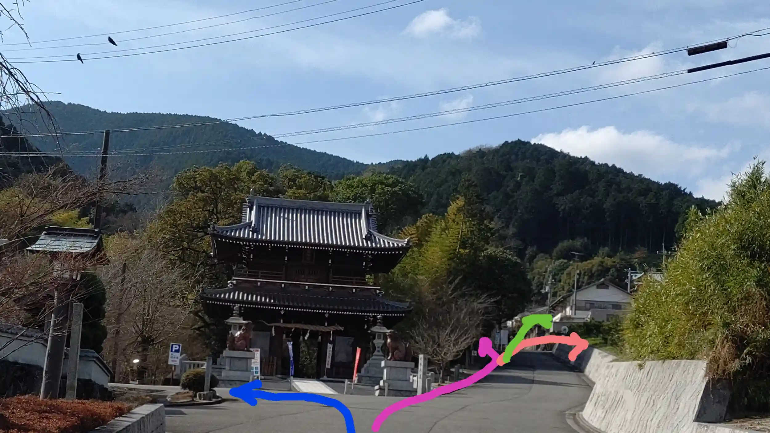 緑の駐車場というか道は車のお祓いの時の道だと思います。