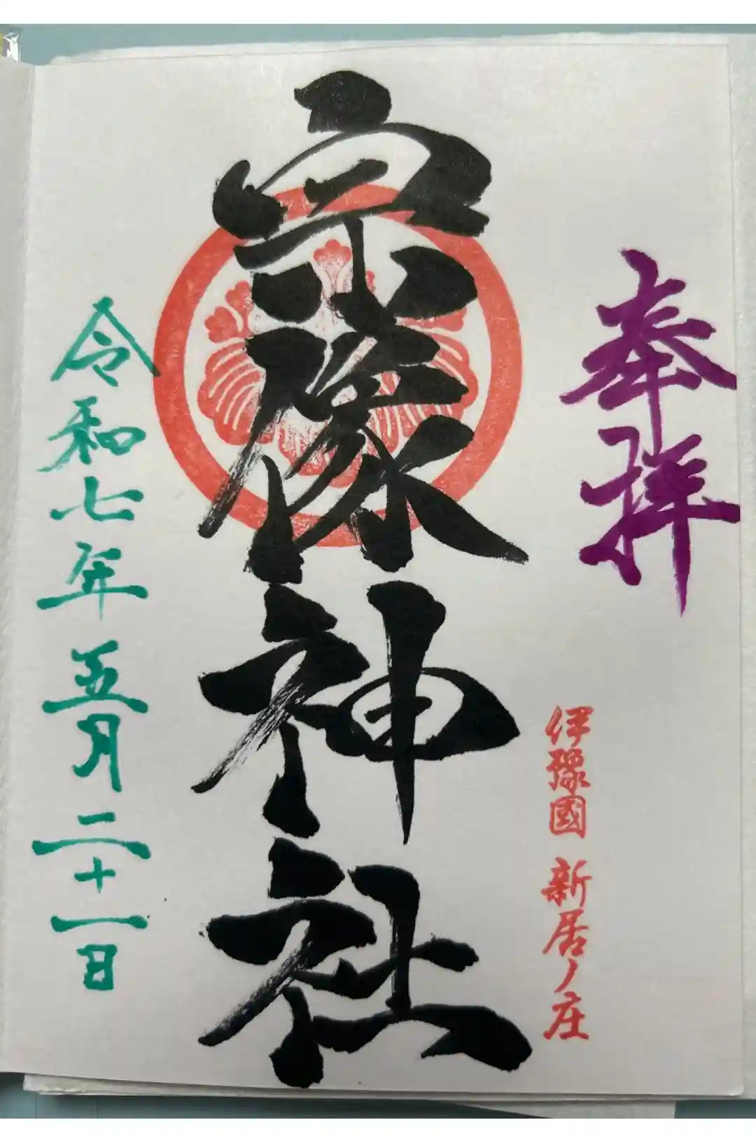 お祭りの期間中なので無理かも…と思いながらも念のために御朱印帳を持参していましたが、社務所に神職さんがおり御朱印をお書き入れしてもらえました