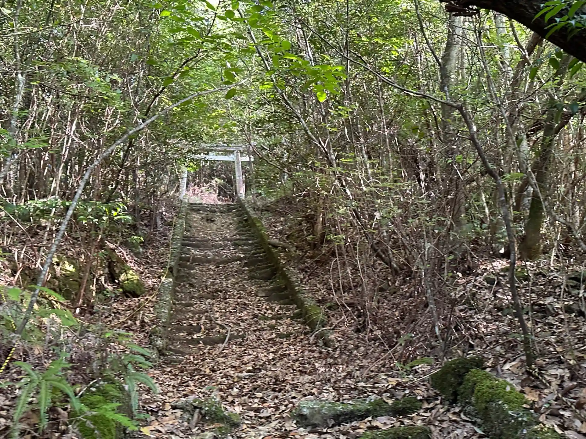 Googleマップにも表示されている通り、社殿の裏手の山に階段が続いており、リーフレットによると山頂途中にこの神社の大元である御陵と祠があるようです。今回は靴の相性も悪いので断念…