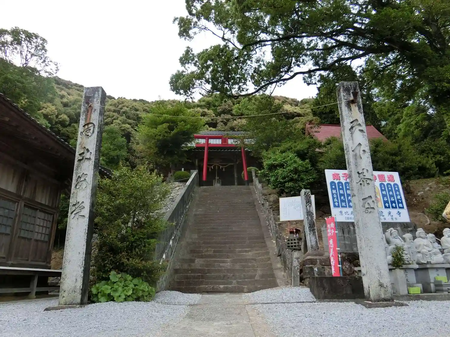 山門の代わりに立つ鳥居。往時の神仏習合の面影を色濃く伝えている霊場。