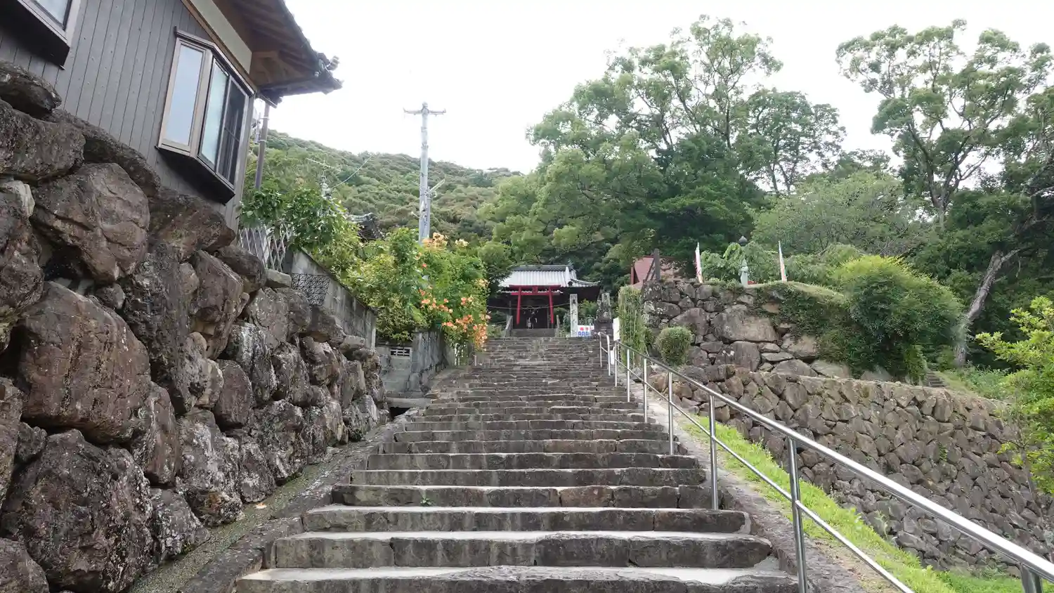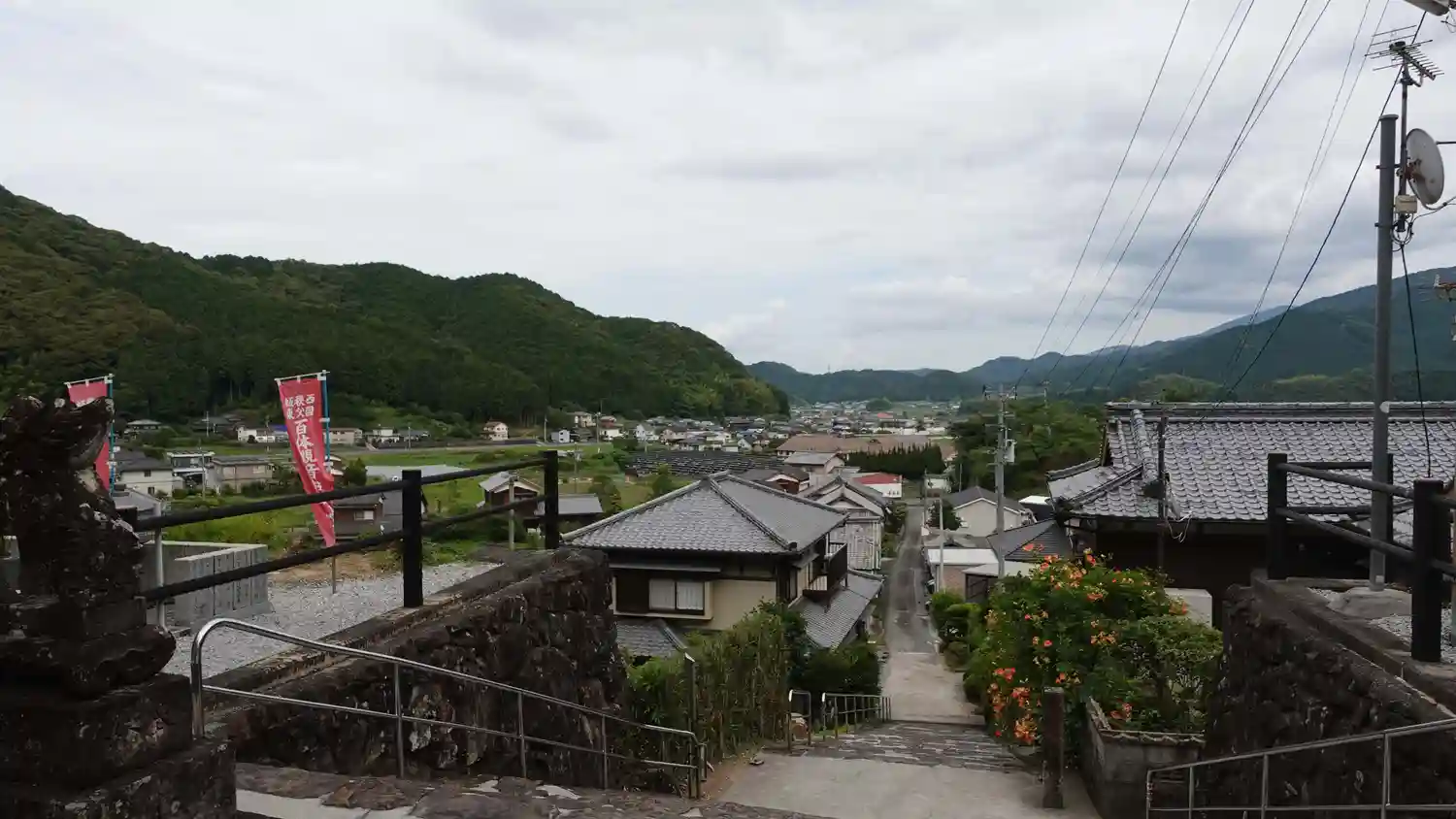 民家の間から続く長い石段の先に、赤い鳥居がひときわ目を引く龍光寺。稲荷神社と共に在る第41番札所で…