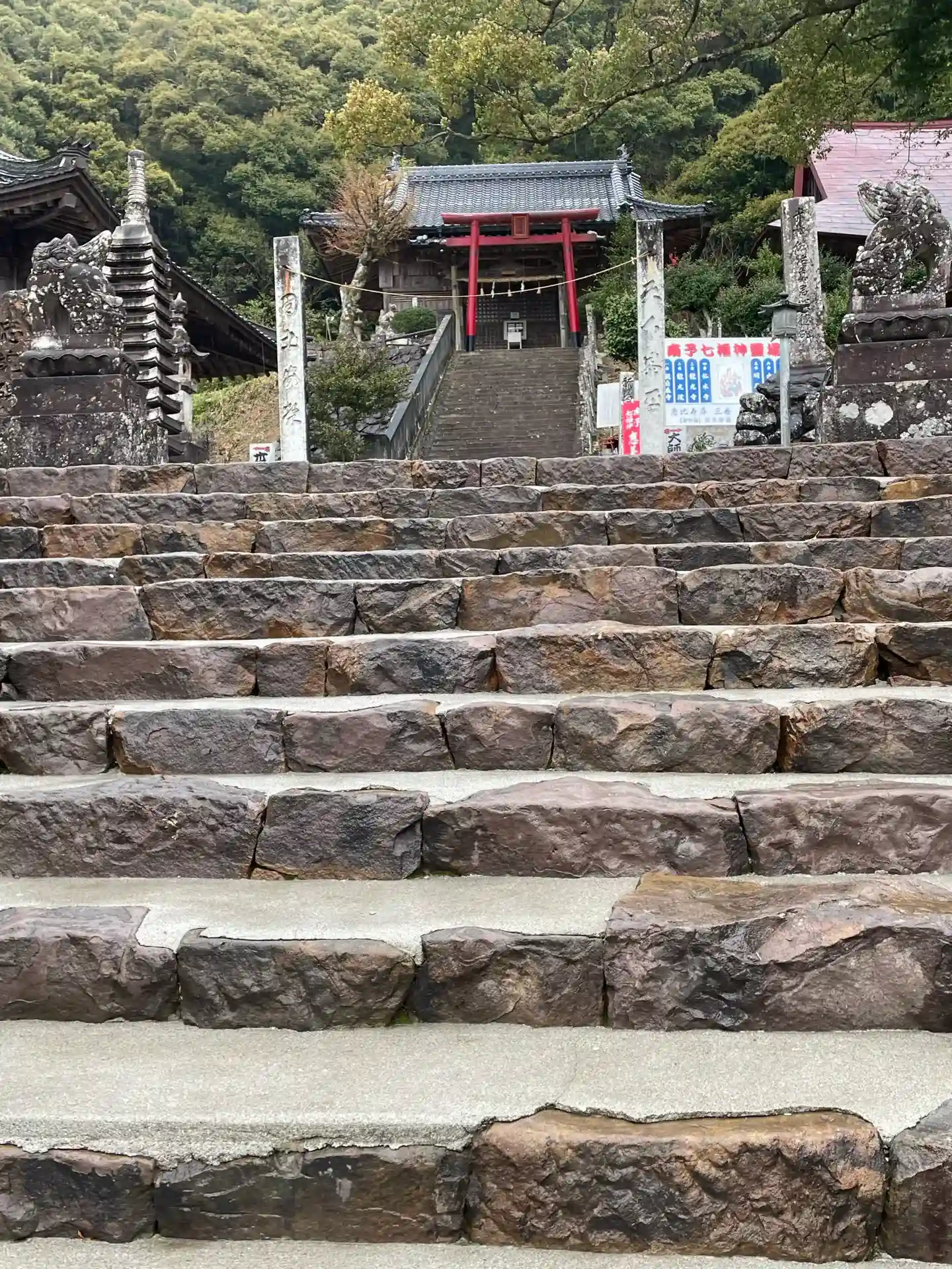 入口の石段には赤い鳥居