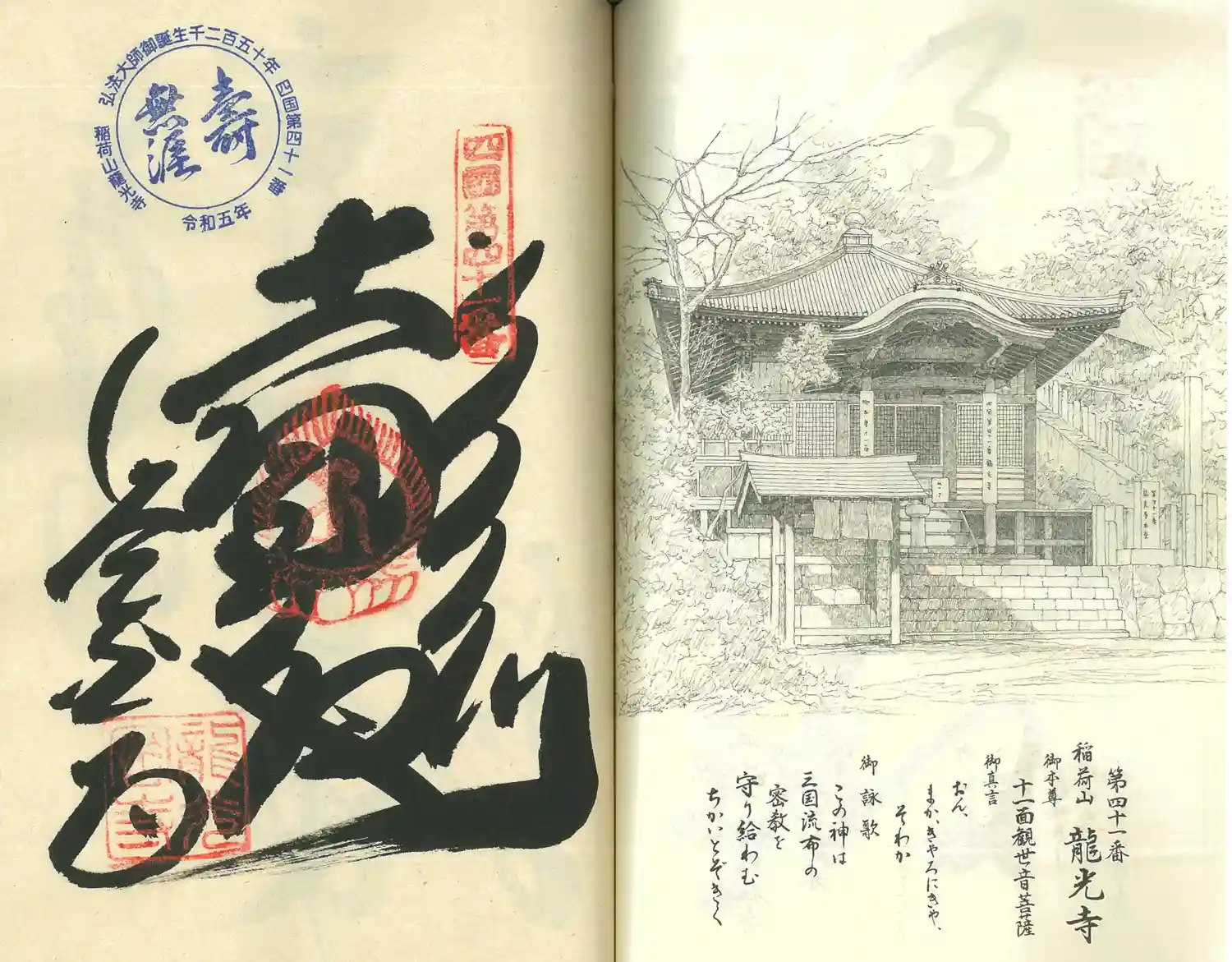 四国八十八ヶ所お遍路第41番札所、稲荷山護国院龍光寺。弘法大師開創。ご本尊は十一面観世音菩薩、脇仏…