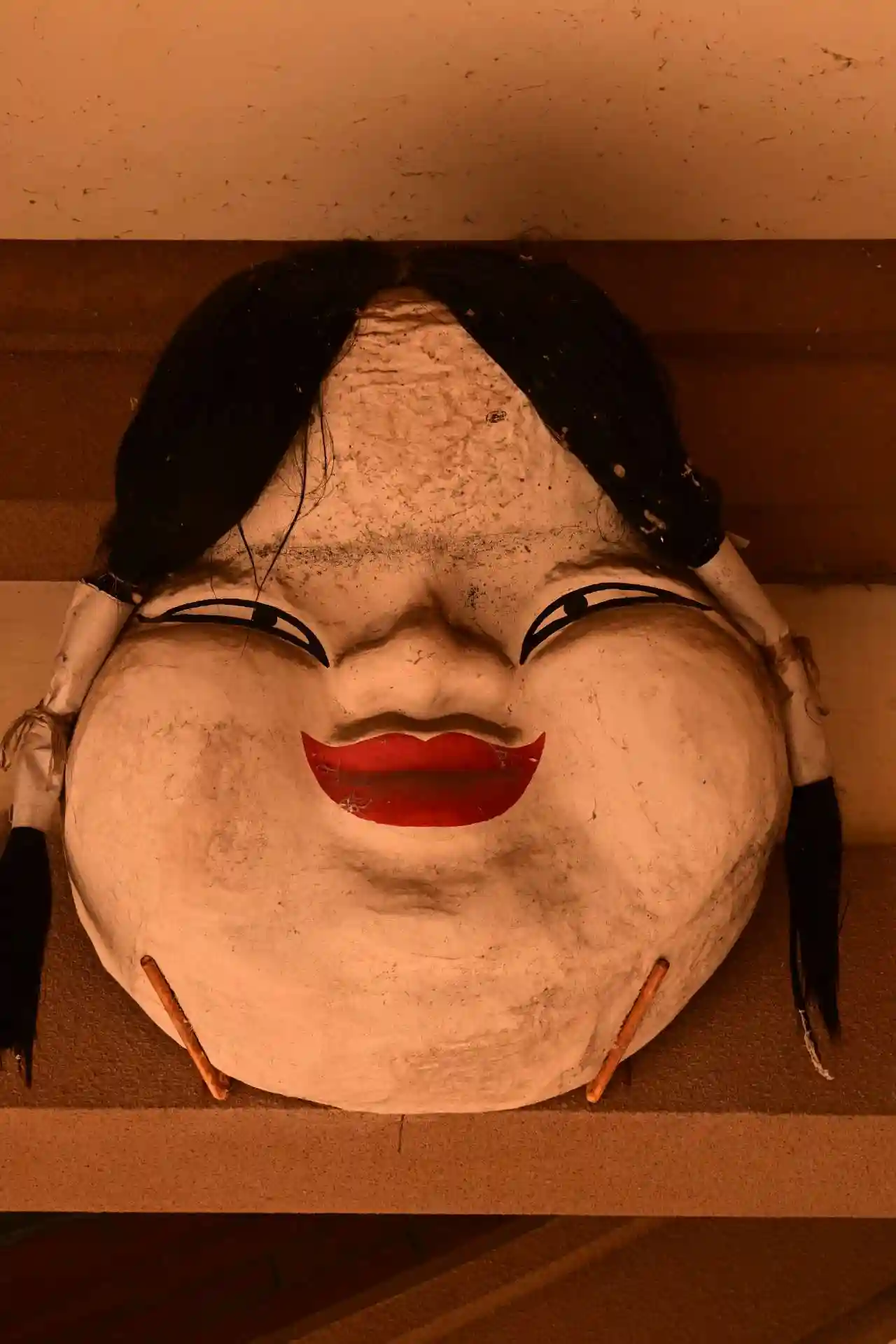 左右にはお多福面と鼻高面が掲げられています