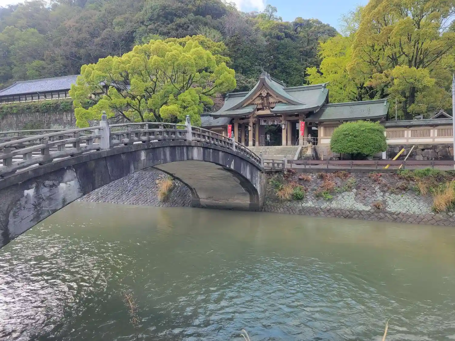 神幸橋と呼ばれる石造りの太鼓橋を渡った先に神門があります