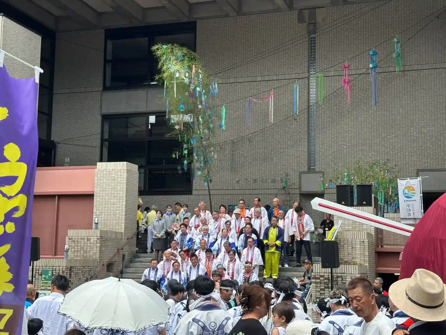 特別席にいた運営委員の方々による「エイエイオー」の鬨の声に各保存会の皆さんが声を上げます。