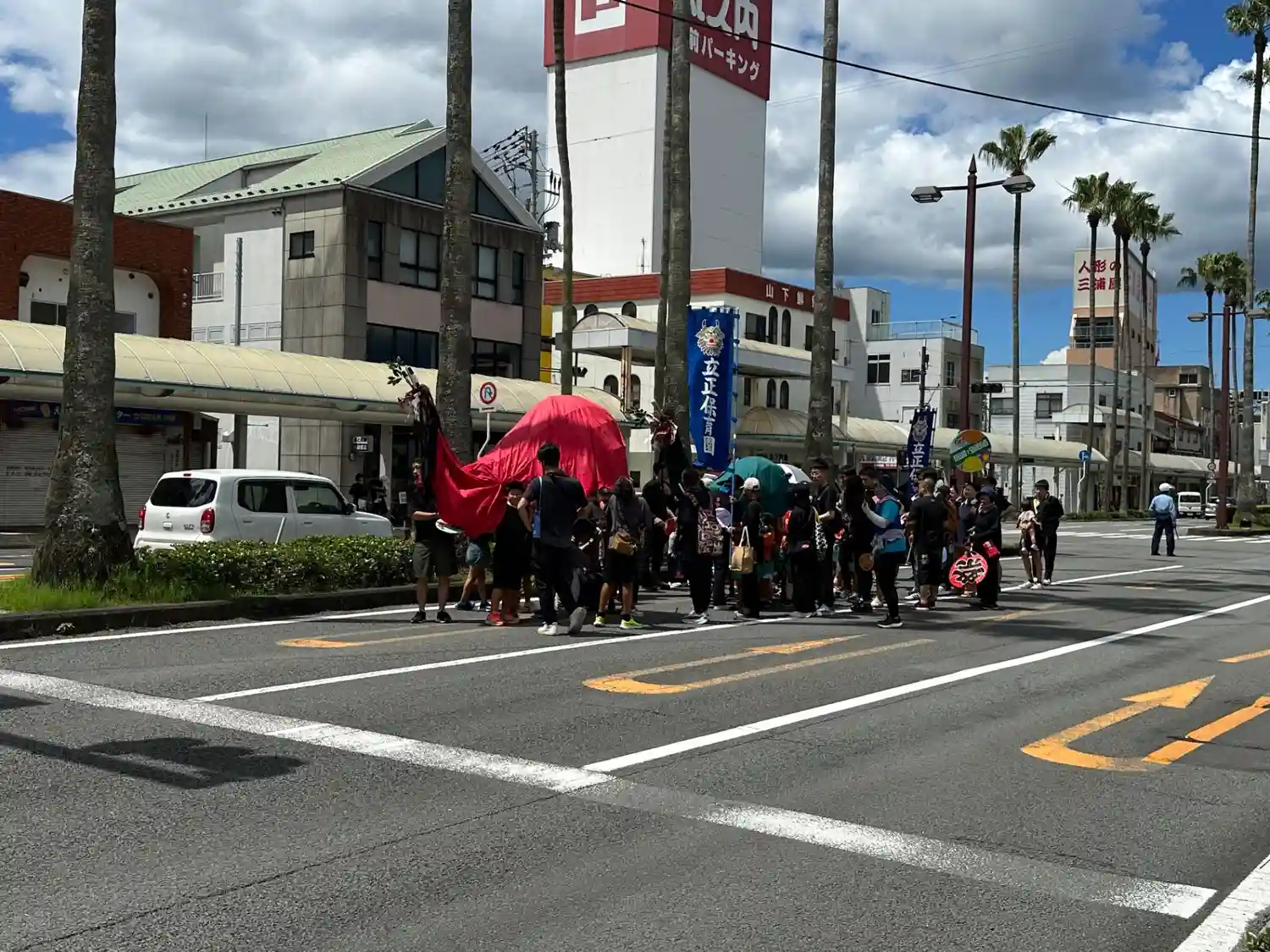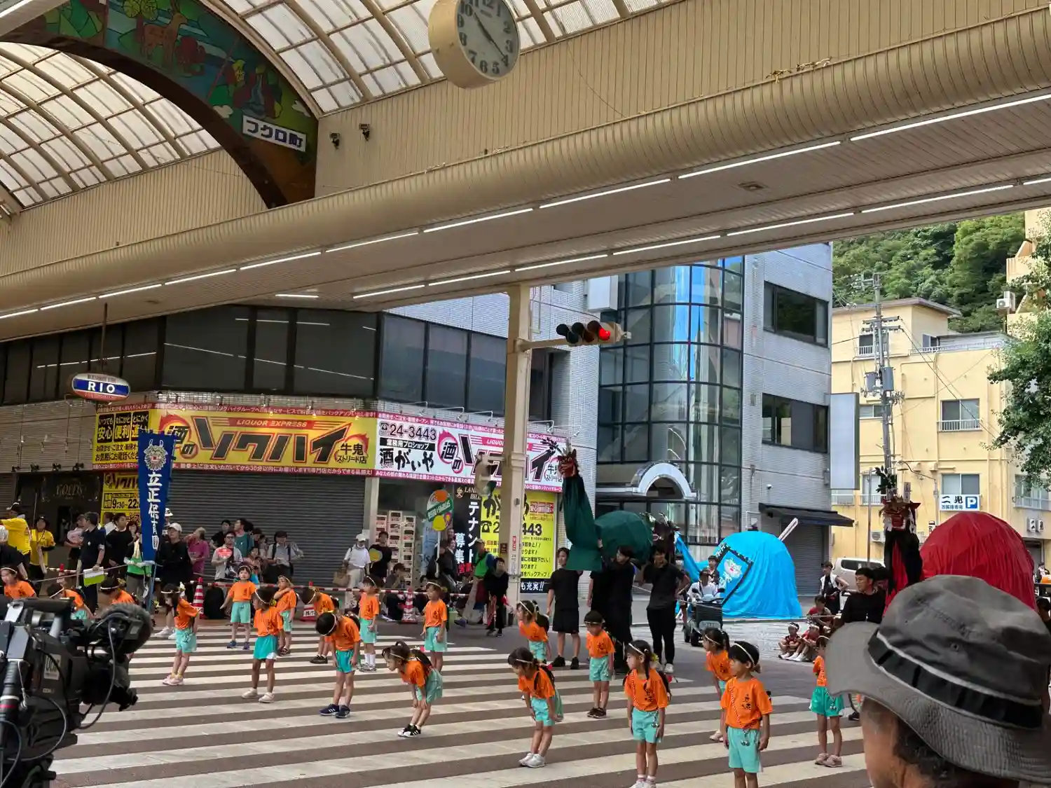 牛鬼パレードが終わって1時間くらいすると大通りに現れました。おそらく13時からの子供行列について行っていたようです。