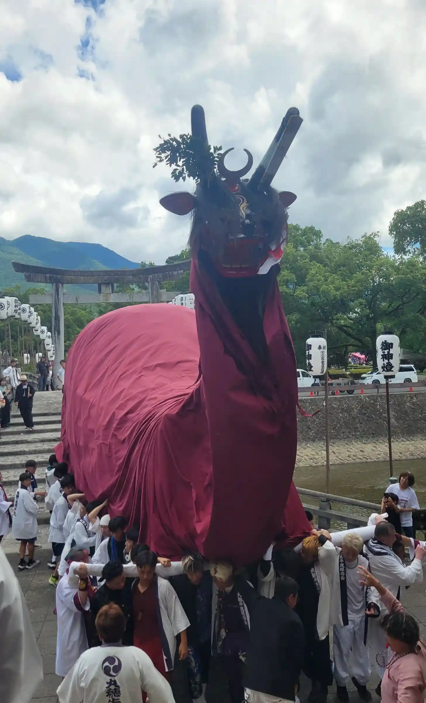 鳥取県の倉吉市にもこの牛鬼があり、こちらの白い子は鳥取からわざわざ来てくれているようです。