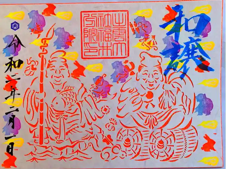 2月の限定御朱印。大黒様と恵比須様の切り絵が素敵です