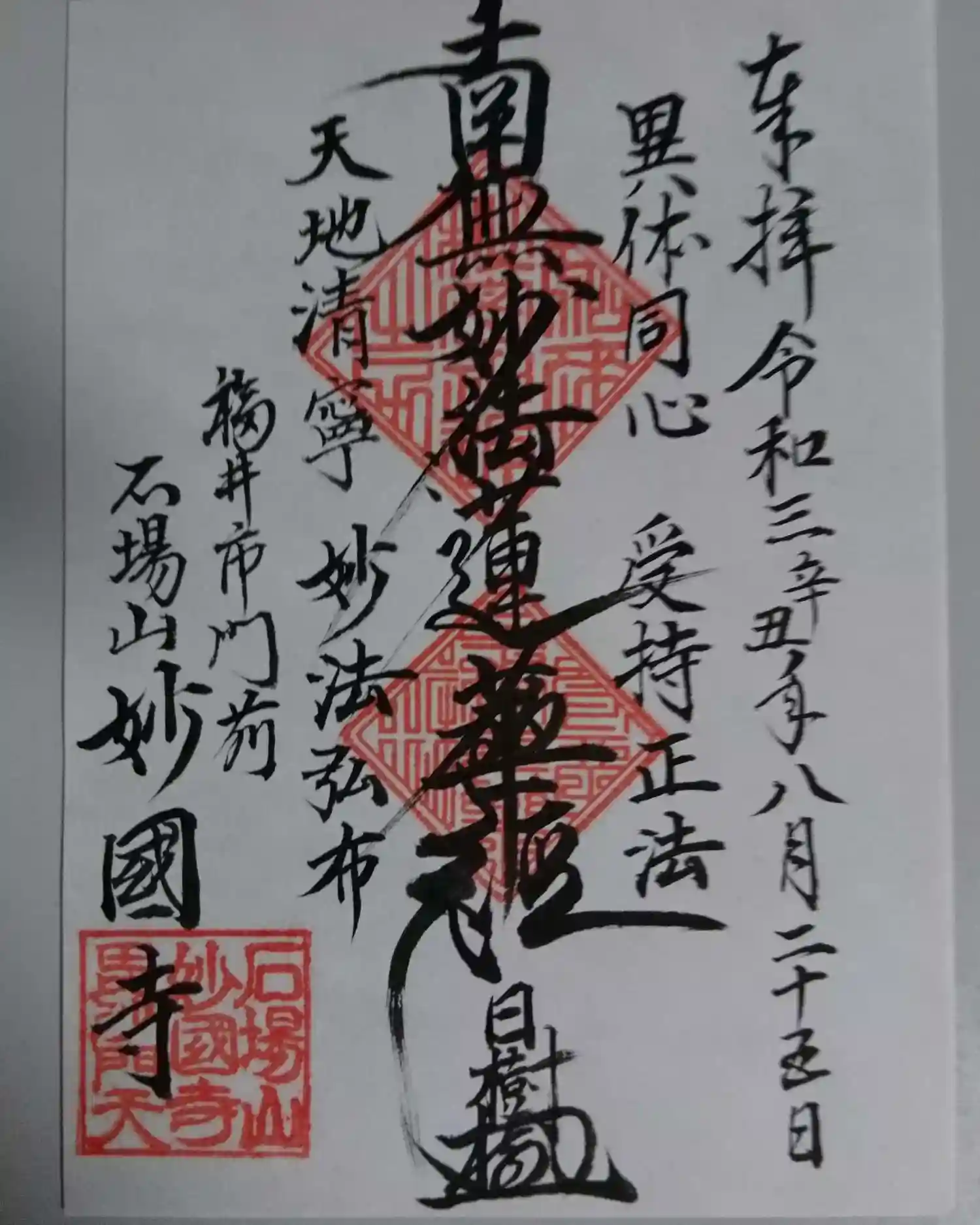 福井市門前町の日蓮宗妙国寺卍