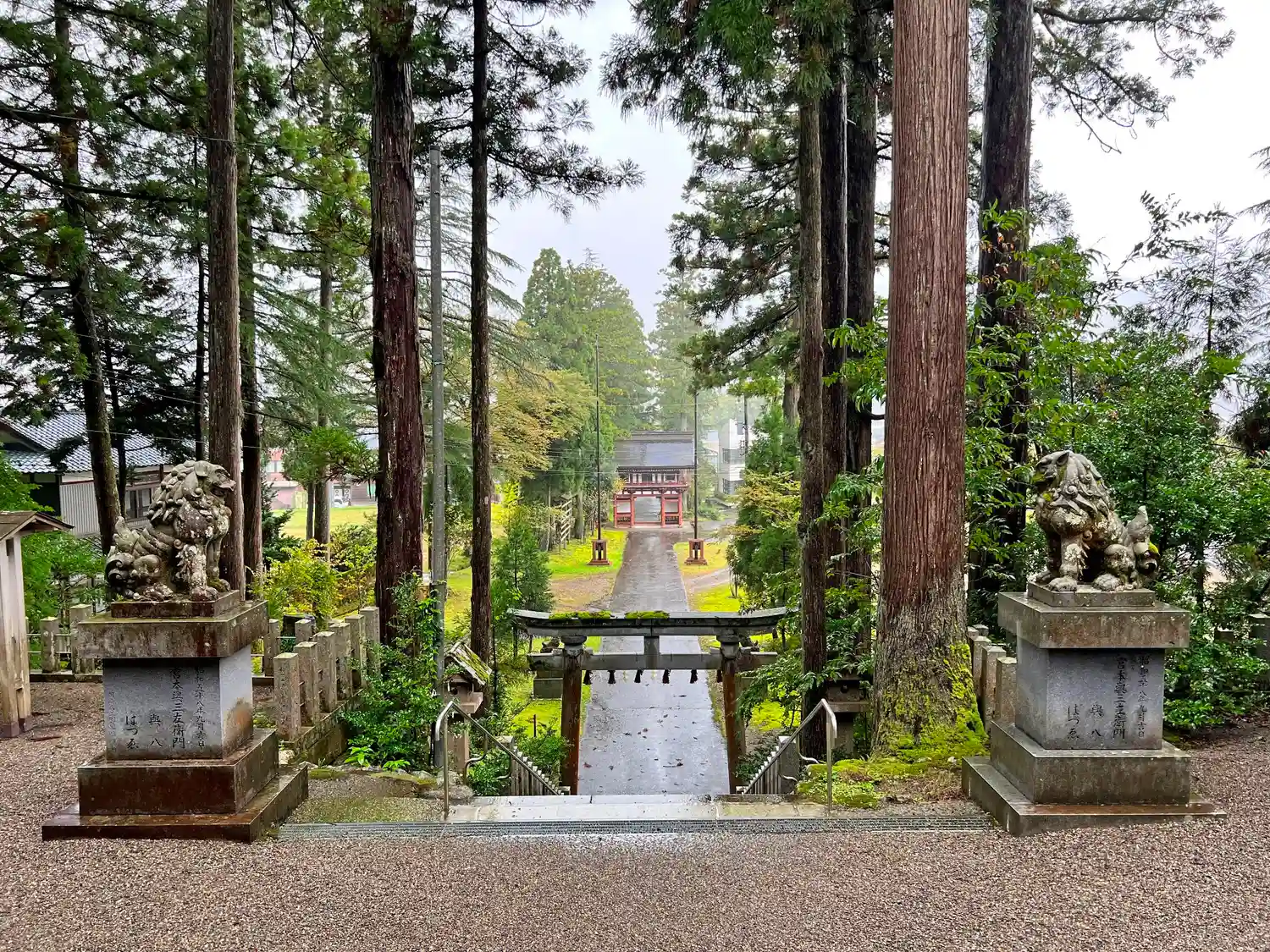拝殿から振り返って境内全景。