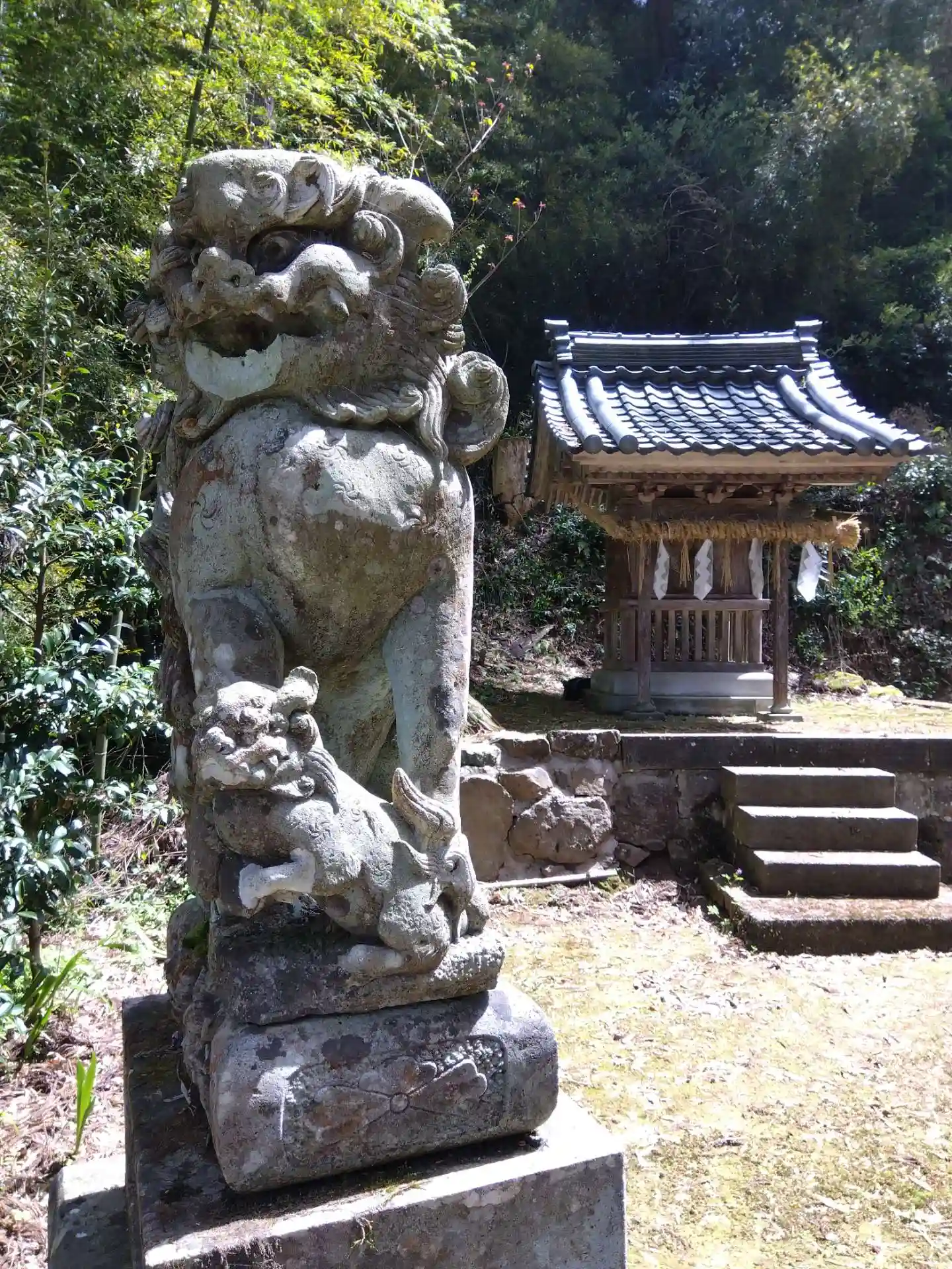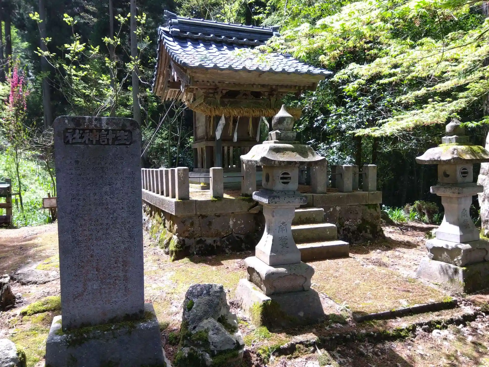 地元の方により境内斜面にシャガが植えられ、4~5月には咲き誇る花が見られます。先日伺った時はまだ咲き始めぐらいでした😄マダニ注意の看板あり💦
