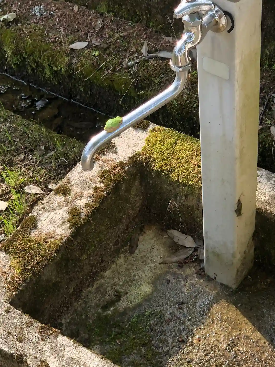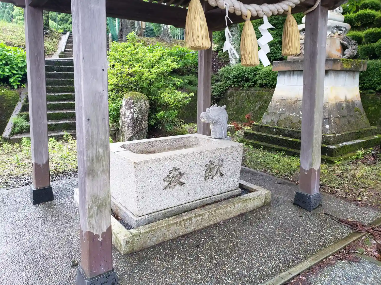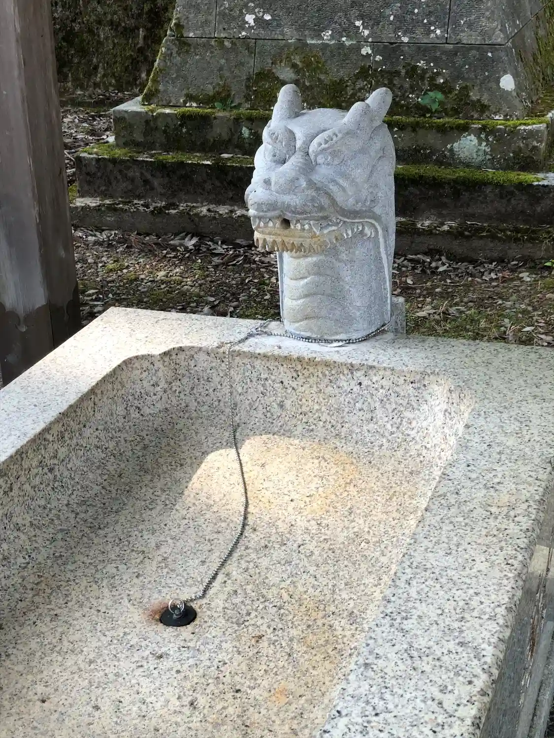神様(?)を乗せた龍の口からお水が出ている手水があります。