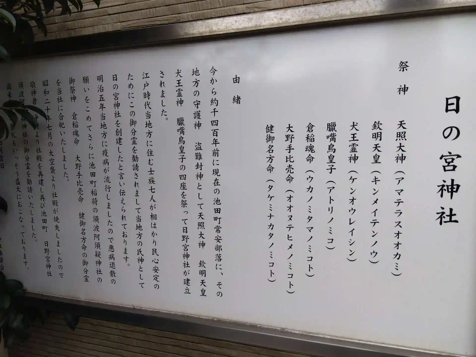 また明治期には、同じく池田町の須波阿須疑神社の分霊を合祀しました。