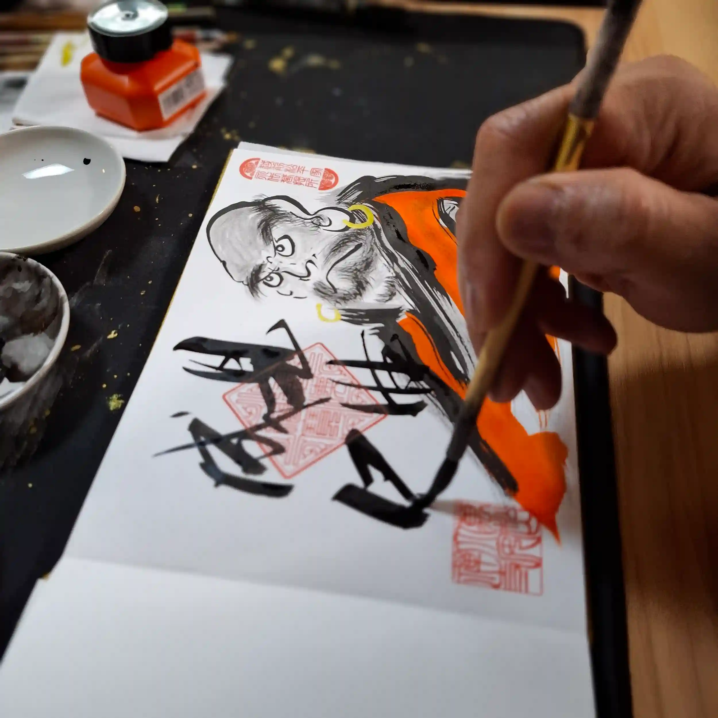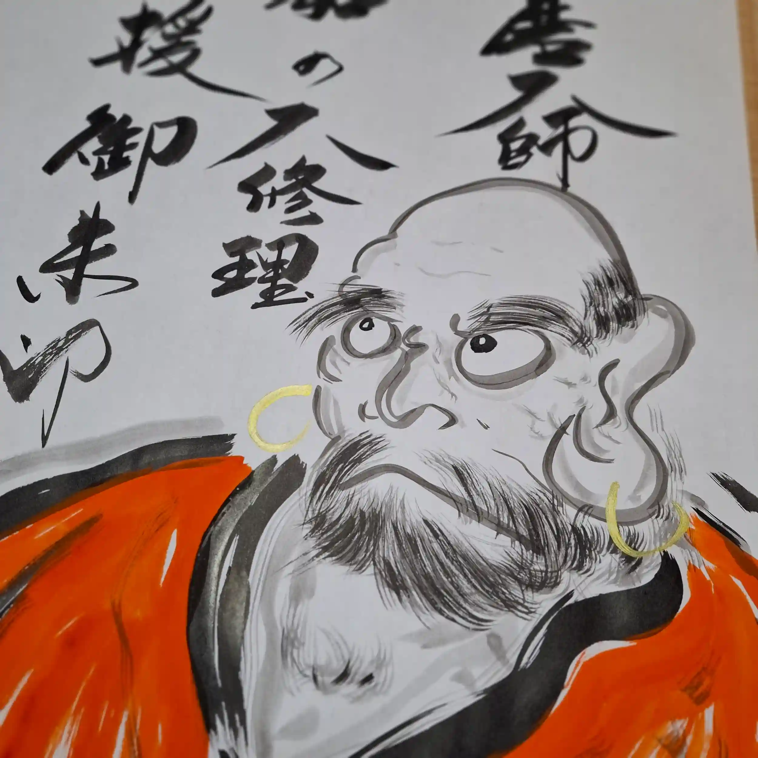 和尚さんが一つ一つ描き、もちろん禅語も真筆書き入れです。この修理が終える時まで描き続け何としてもこの大事業完遂を目指していく所存です。