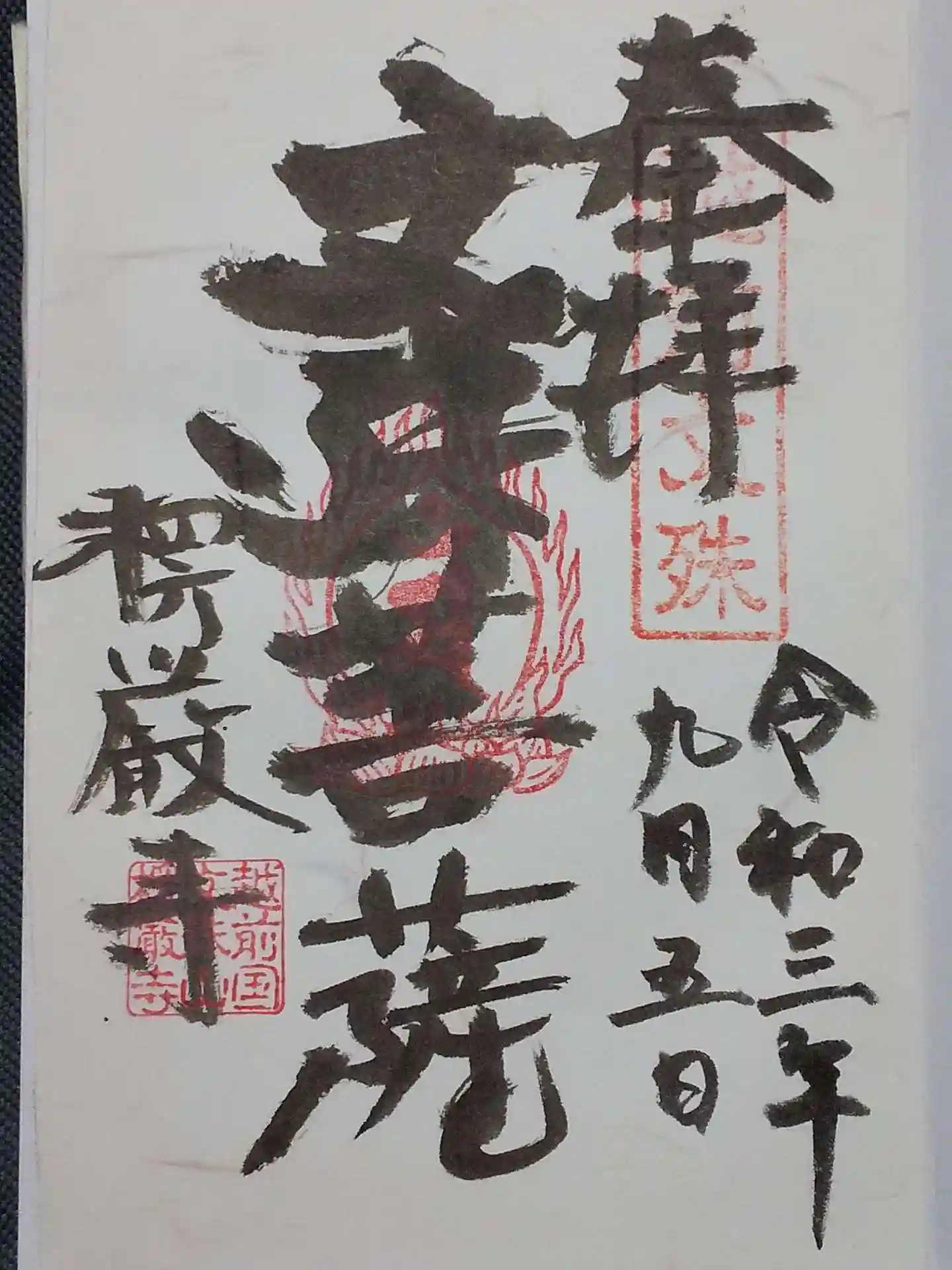 一時的に空いたスペース停めて、楞厳寺さんお参り後に書置き御朱印いただきました。