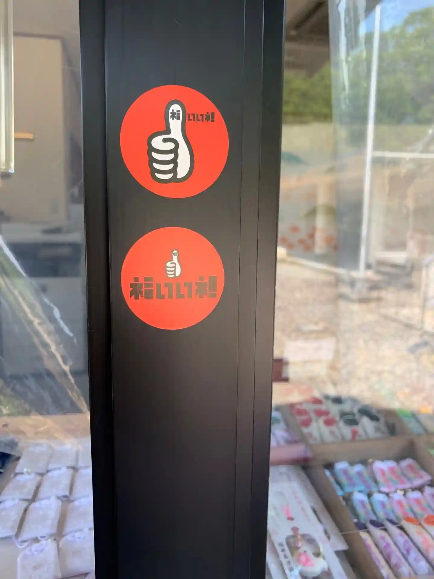 社務所に貼られた、福いいネ!のシール