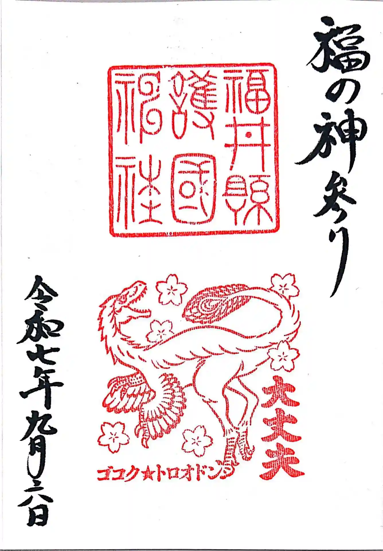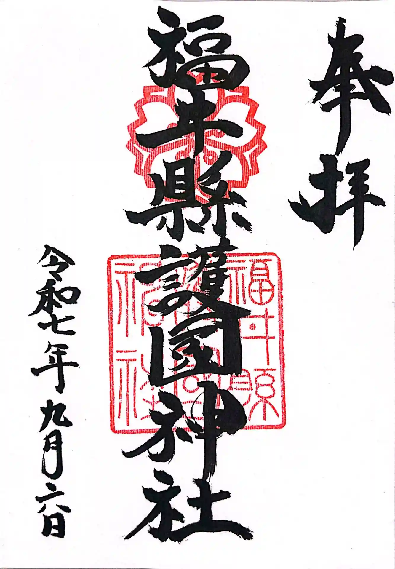 福井縣護国神社にお詣りし、御朱印と御竜印を頂きました。