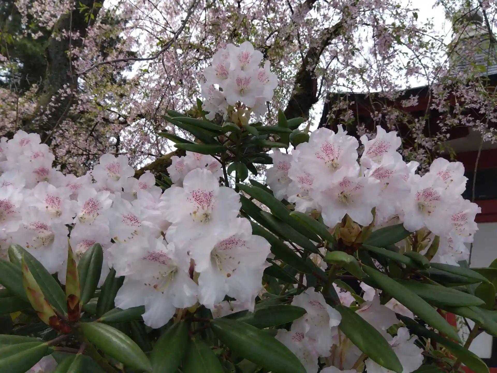 盛りからは少々遅れましたが、熊蜂が飛び回る境内で散り際の桜を一人堪能です🌸