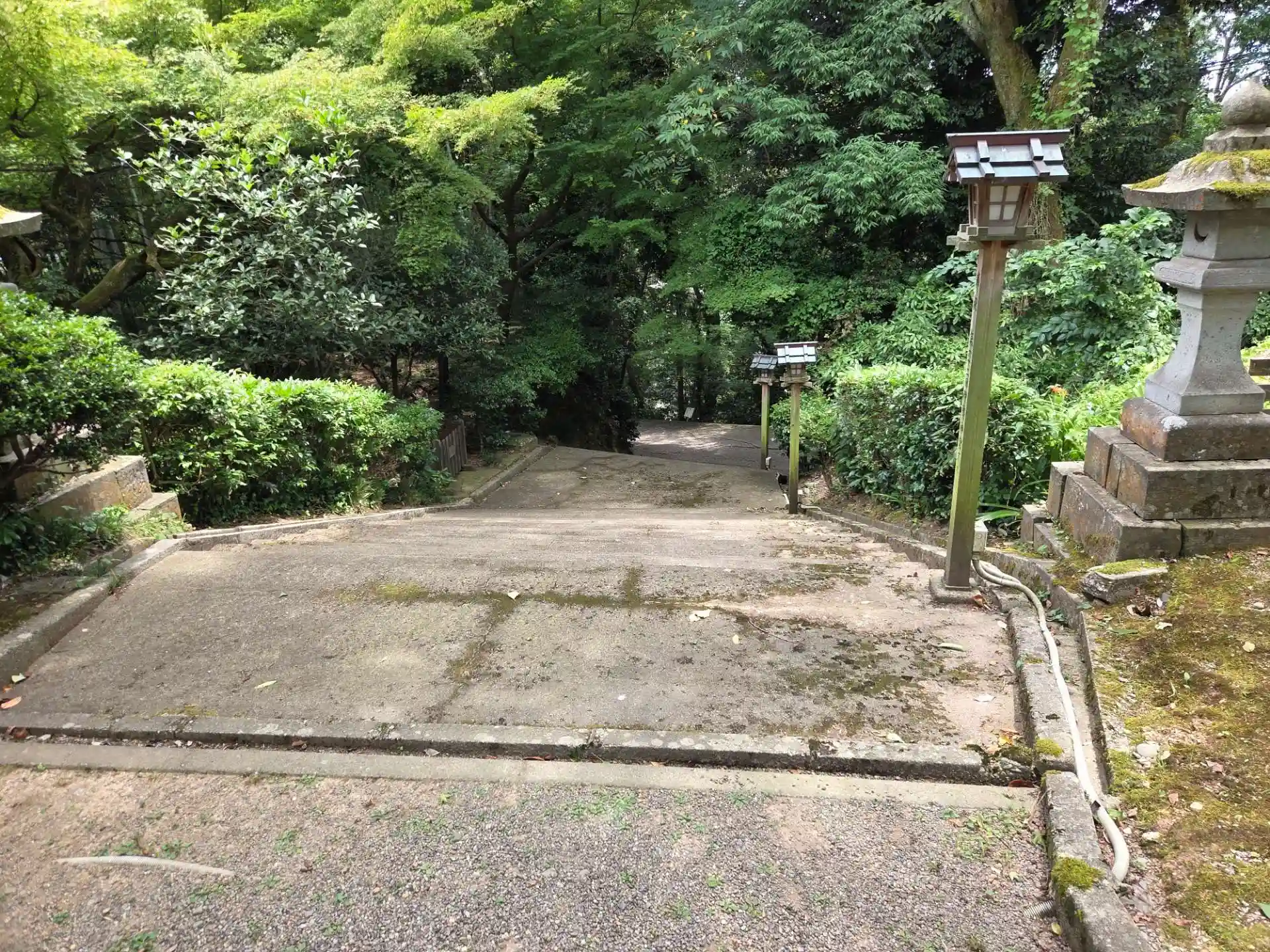 足羽山周辺にはいくつか神社があり、徒歩なら気にする事はないが、車だと一方通行があるので注意が必要。継体天皇・大宮地之霊又は坐摩神(生井神・福井神・綱長井神・阿須波神)の御坐を祀り、越前最古の神社です。男大迹王(後の継体天皇)が朝廷に祀られている大宮地之霊(坐摩神)を勧請創建し、後に都に上がる際に自らの活霊を祀ったものです。まず最初に足羽山にある神社でこちらを参拝しましたが、ナビに従って行くと中腹の宇あ参道入り口に到着。どこが表参道入口なのかも判っていません。石段上の鳥居から表参道を覗くと、ずっと下へ下っていきそうだったので表参道からの参拝は諦めました。