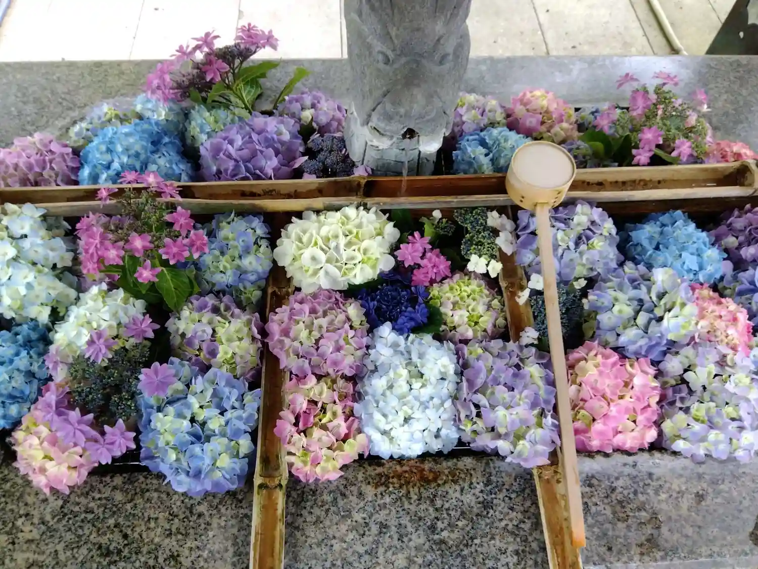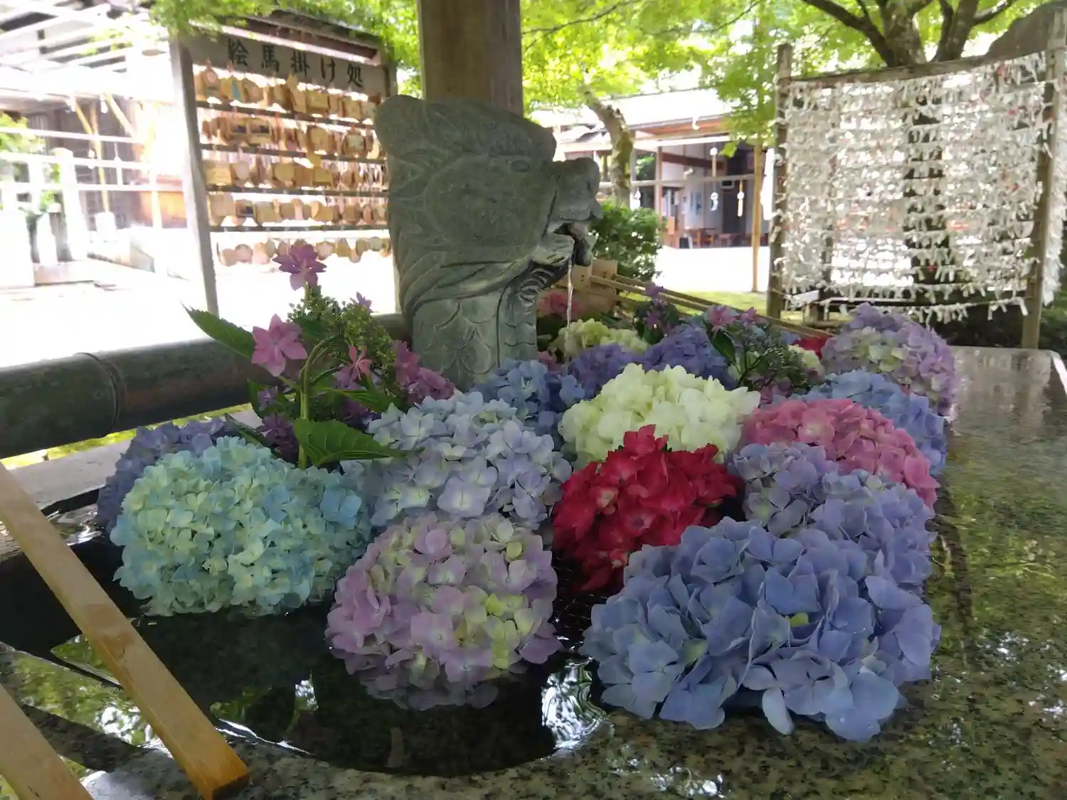 手水舎は紫陽花の季節には花手水になります。今年も花手水見る事が出来るのかな?楽しみです☘️