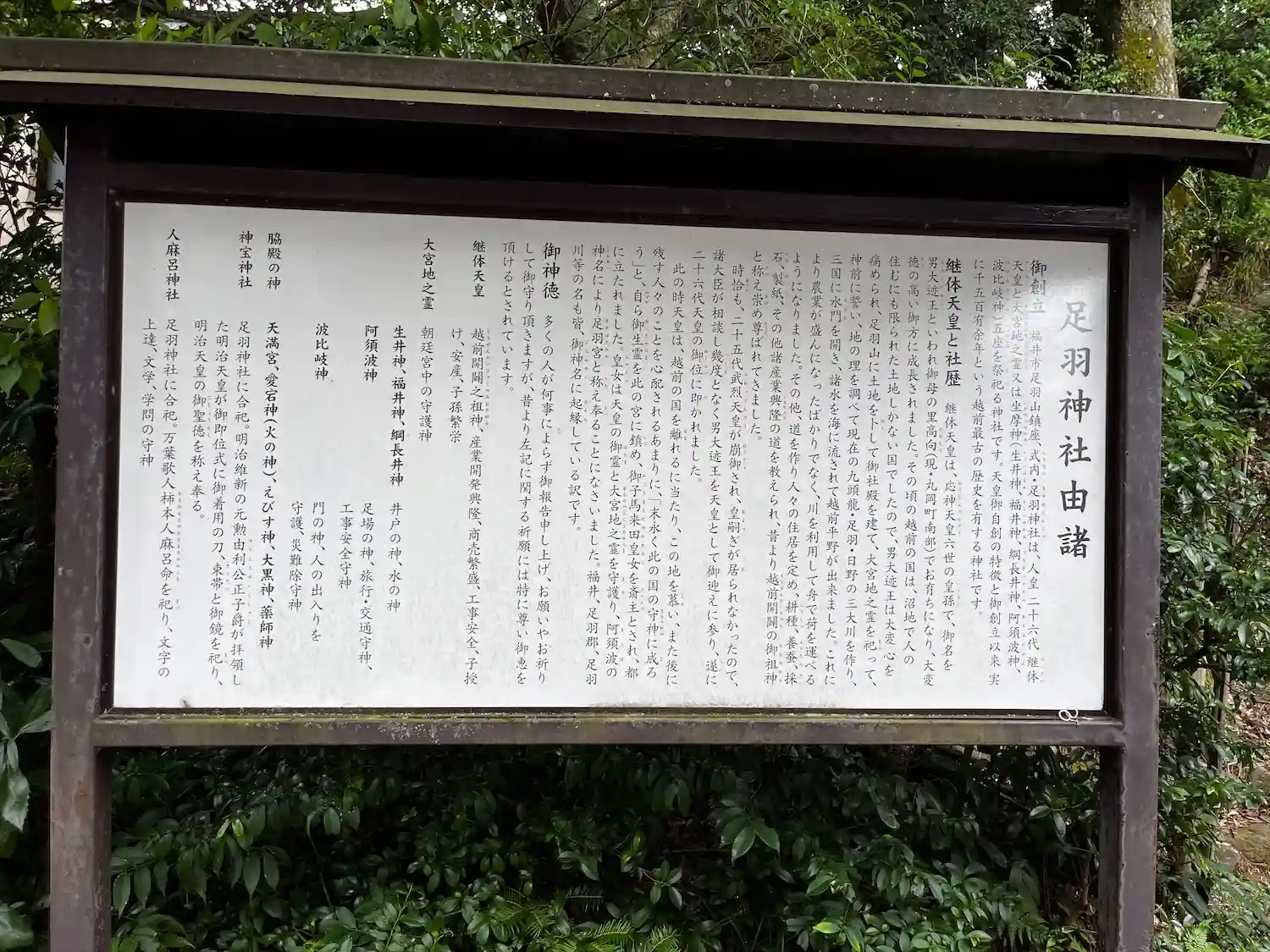 足羽神社の由来説明です。
