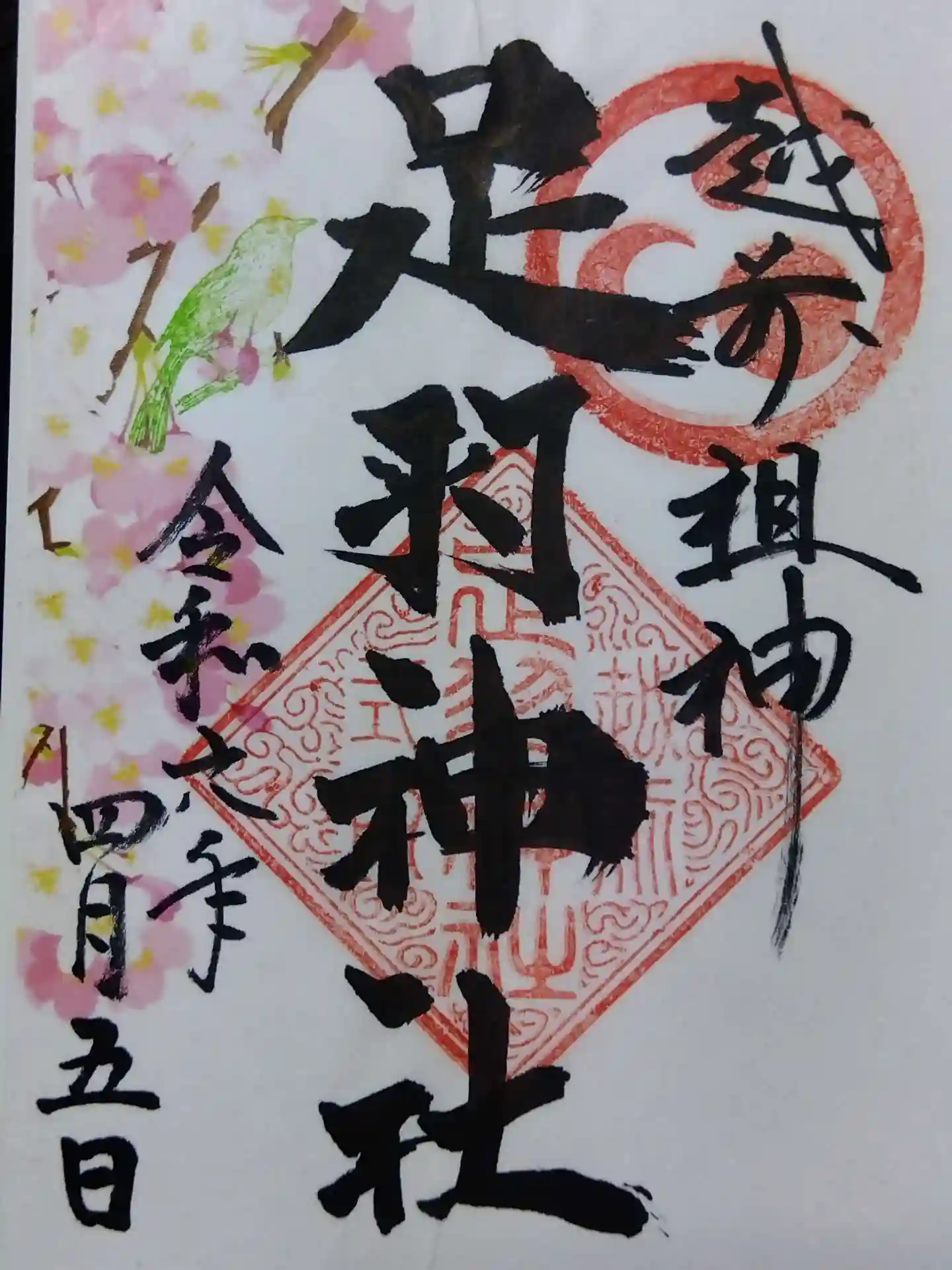 お馴染み足羽神社の枝垂れ桜が開花、早速「枝垂れ桜」御朱印をいただきました🌸