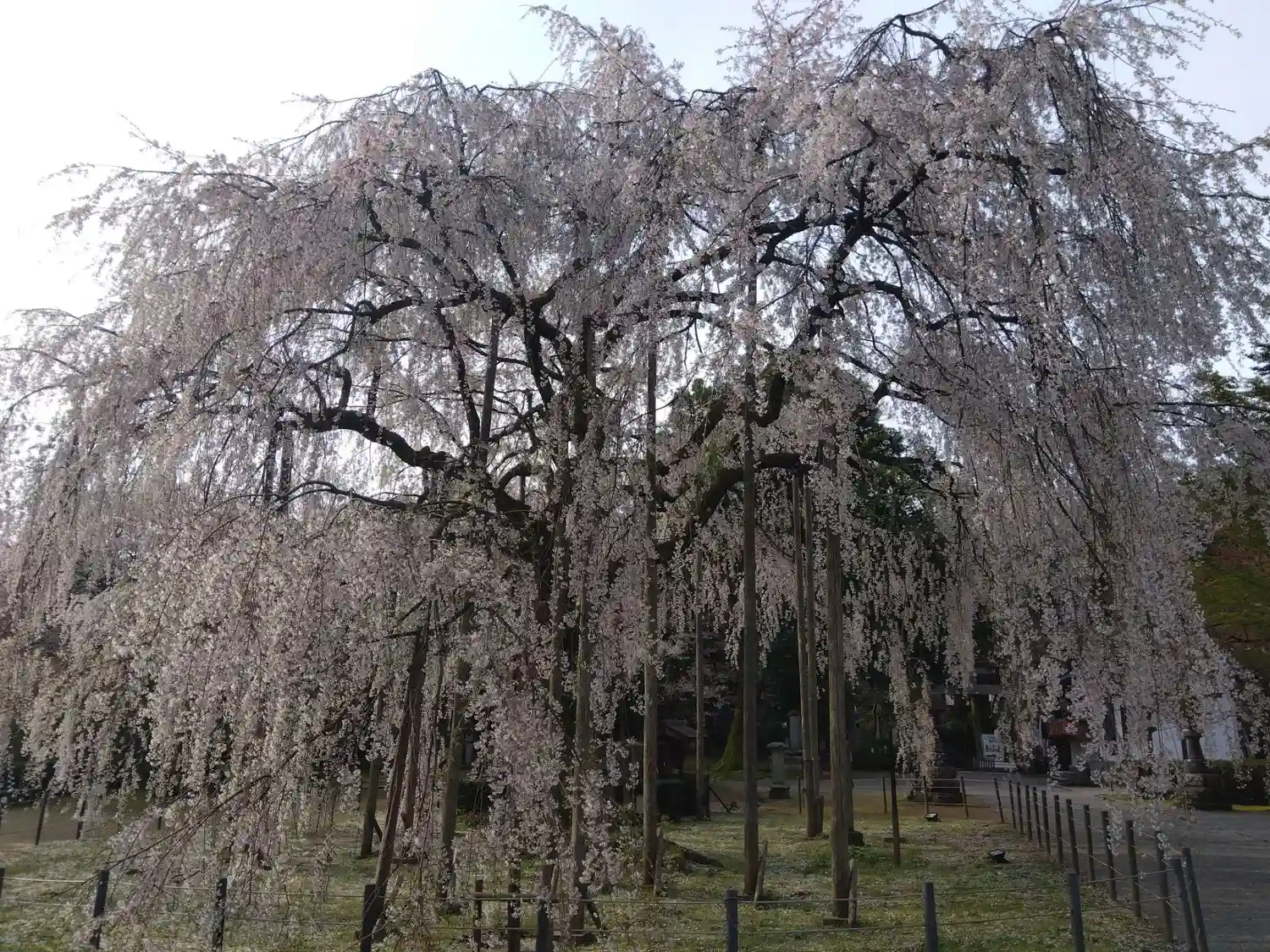境内の中心に大きなしだれ桜があります。