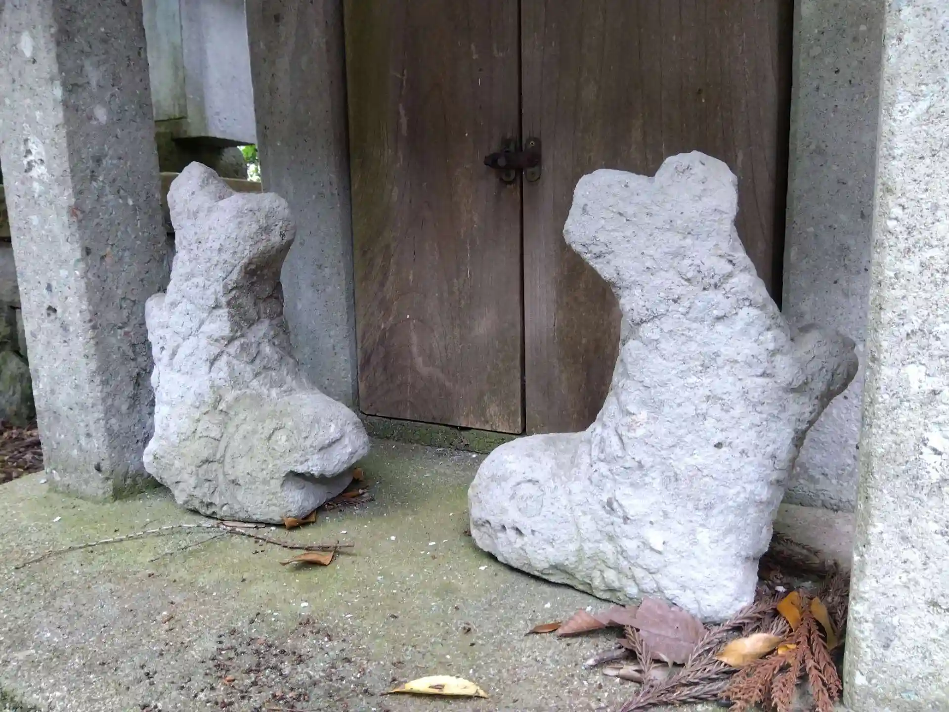 こちらの境内社では、笏谷石狛犬の他珍しい狛シャチホコ(?)が見られます😅