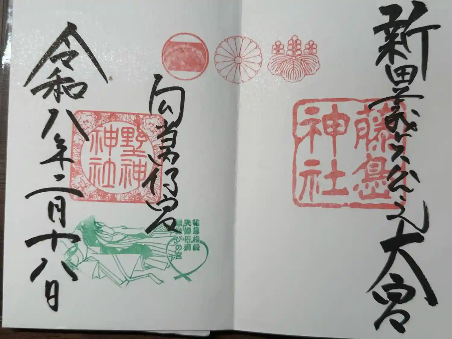 通常御朱印は帳面見開きにてお書きしております。