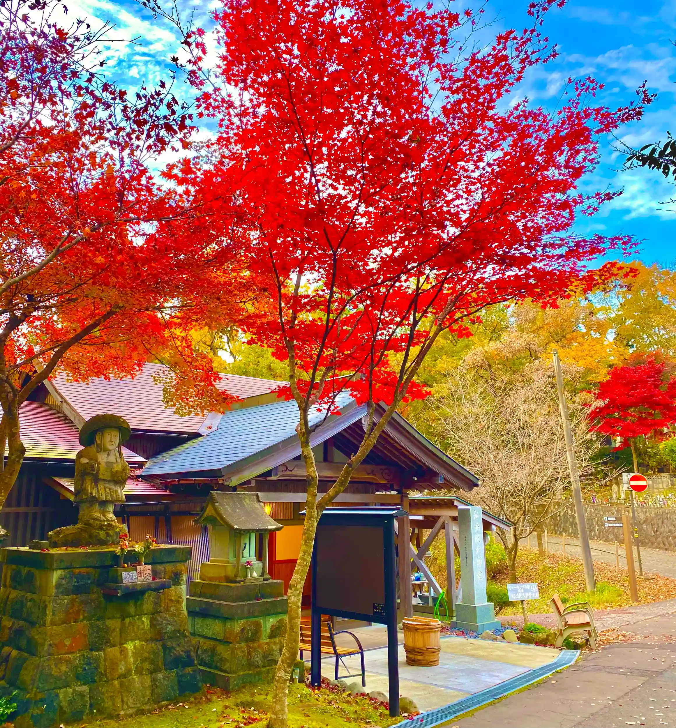 1年中赤い紅葉が目印のお寺です。