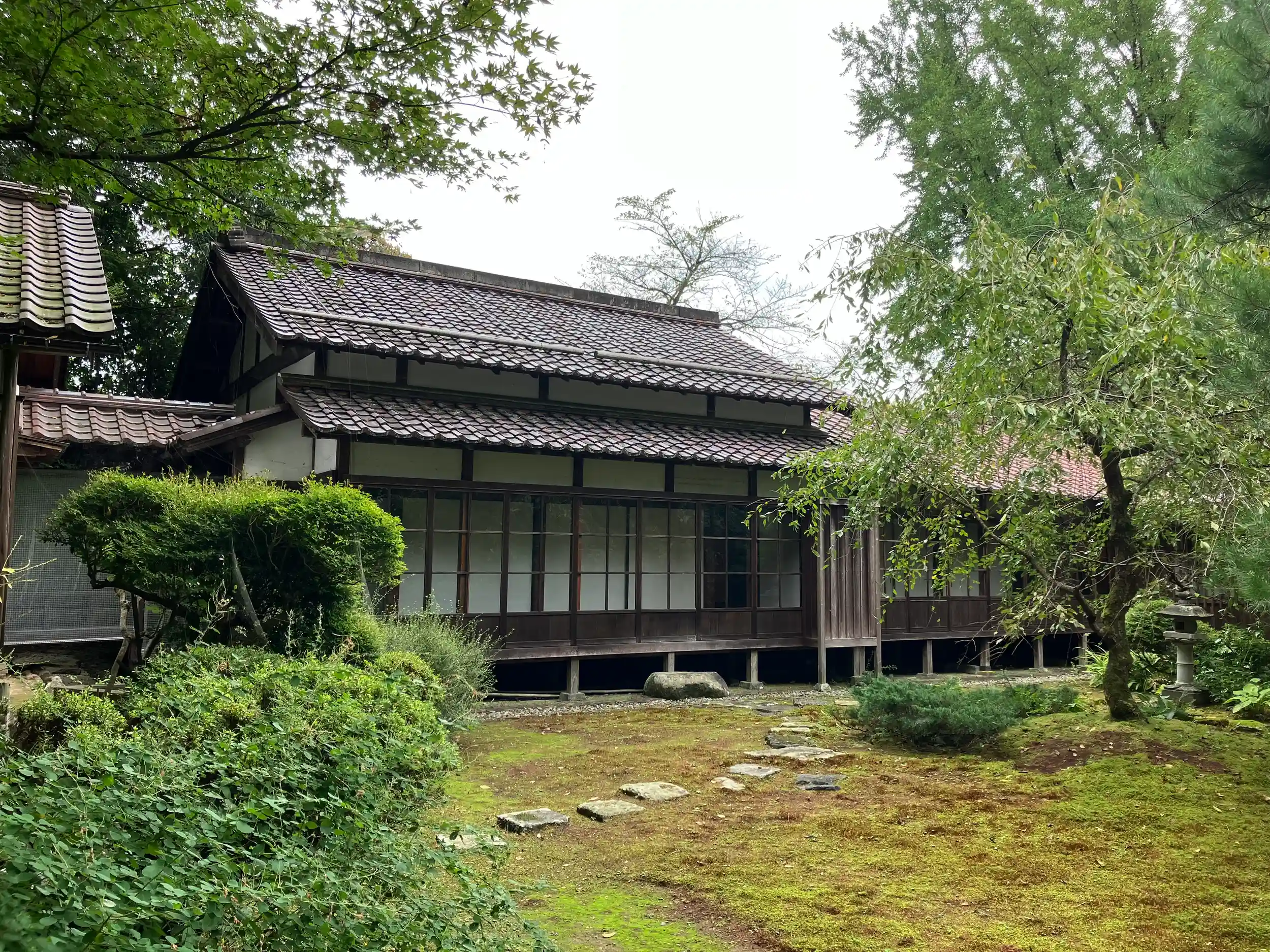 本堂は1831年建築の福井城本丸御殿・御小座敷を、書院は大奥御座之間を移築したものである。
