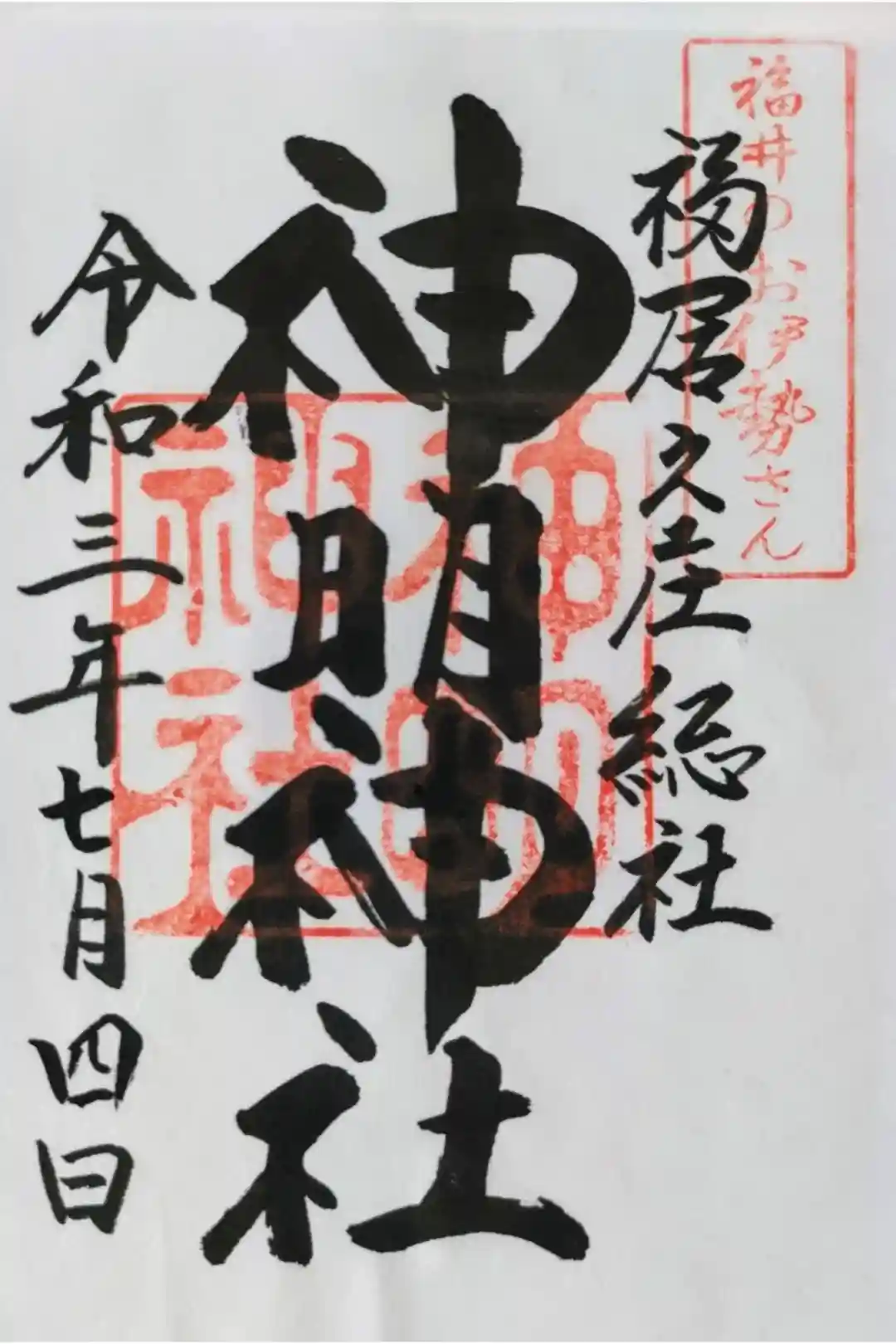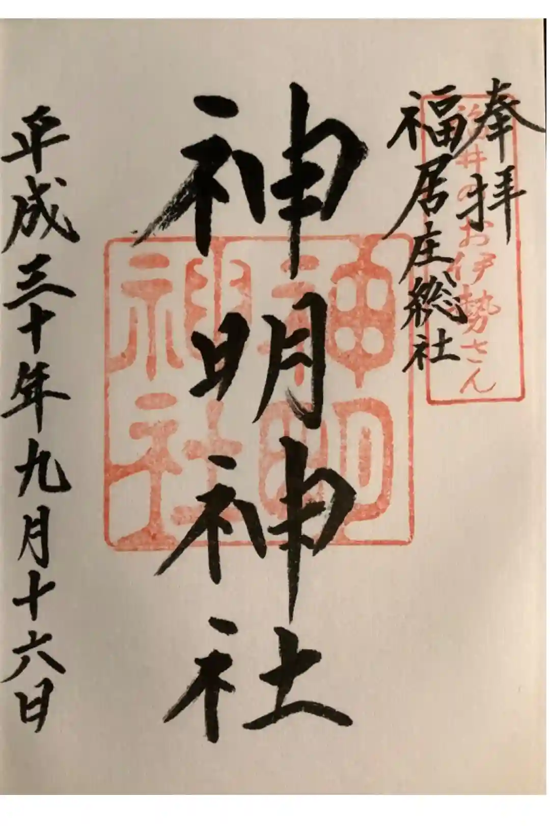 神明神社にお詣りし、御朱印を頂きました。