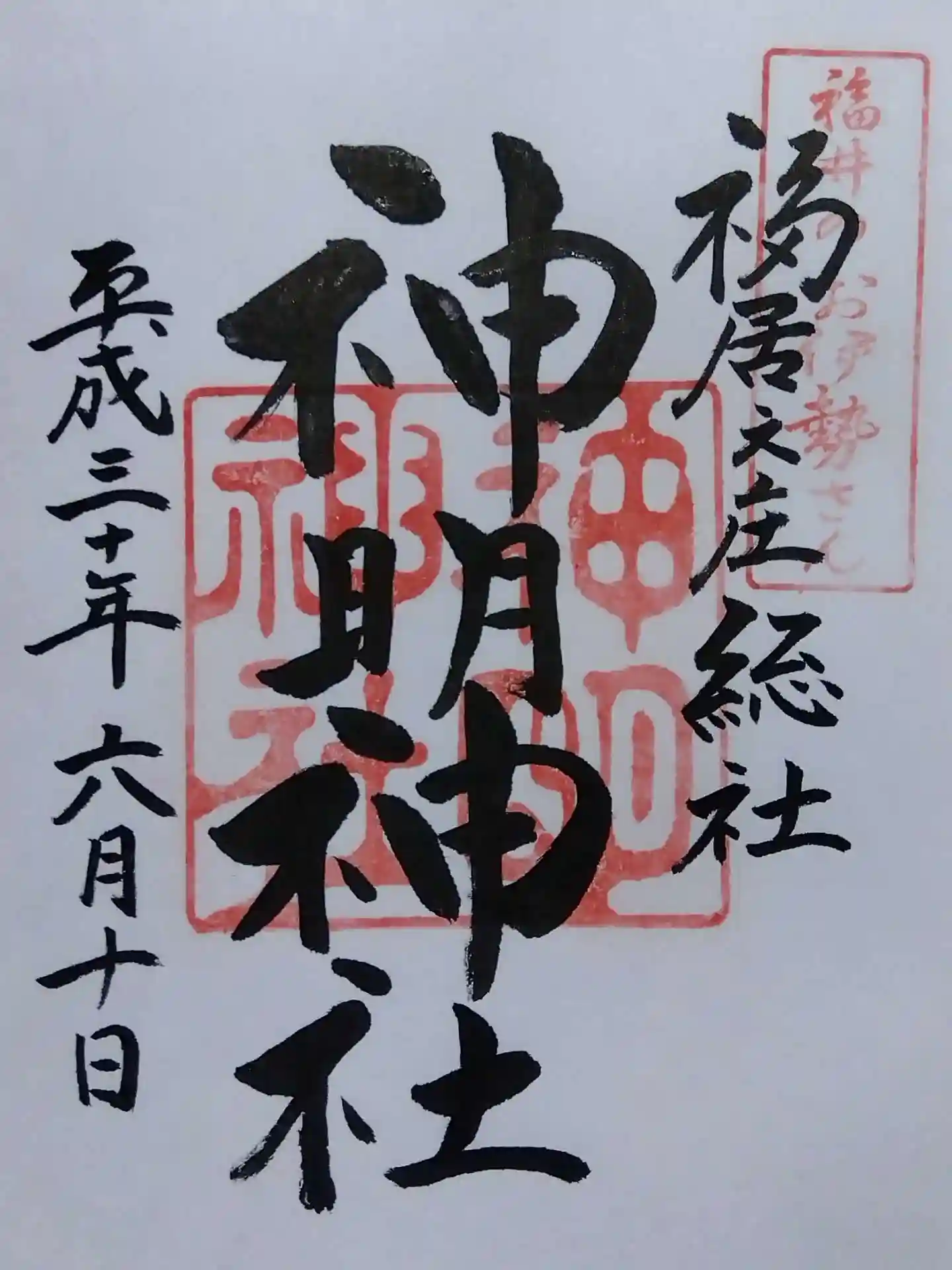 過去参拝投稿は平成30年6月、福井市の神明神社でいただいた初の御朱印🖌️