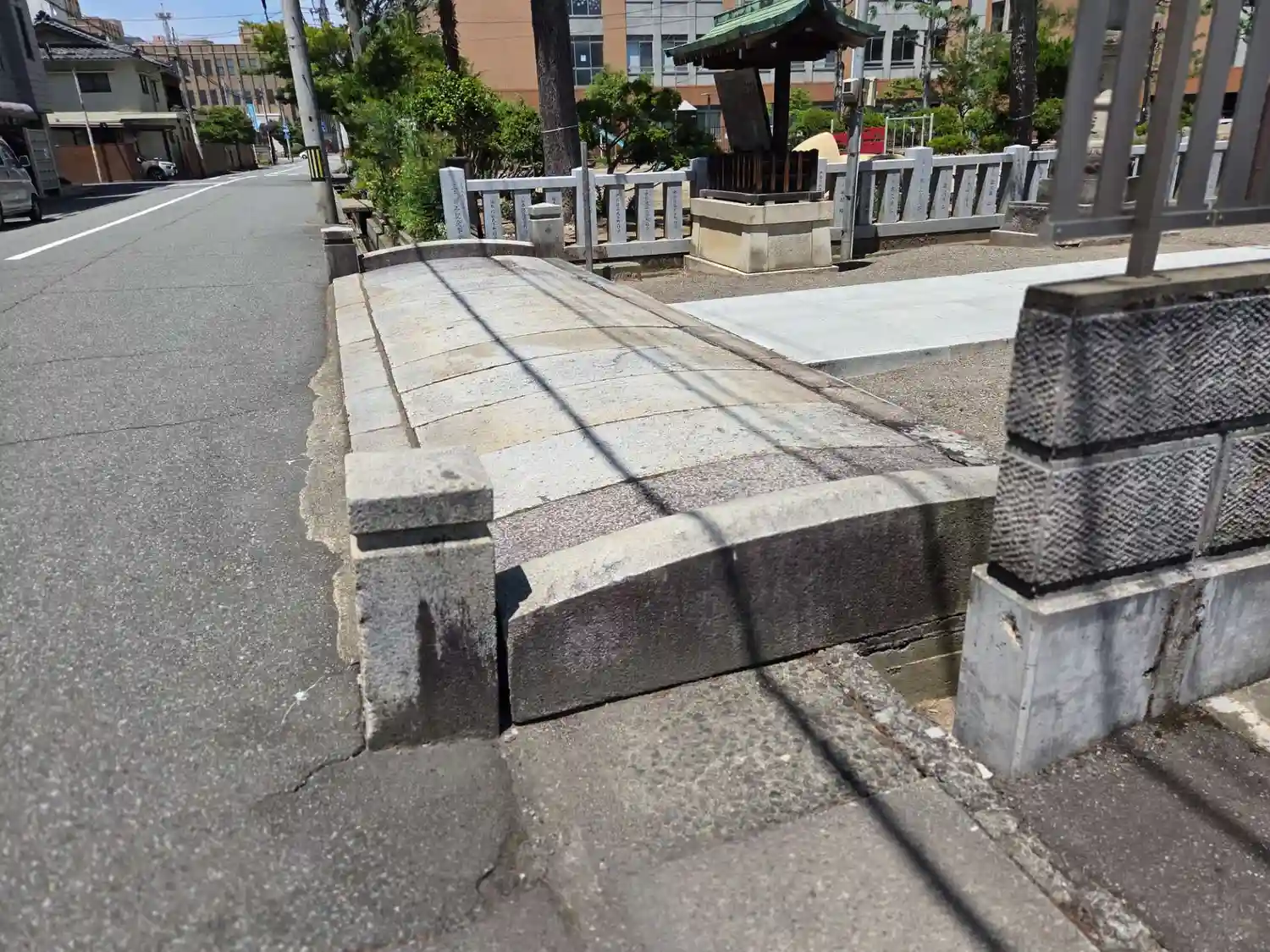 境内には柴田勝家公が作った九十九橋の橋梁一部があります。
