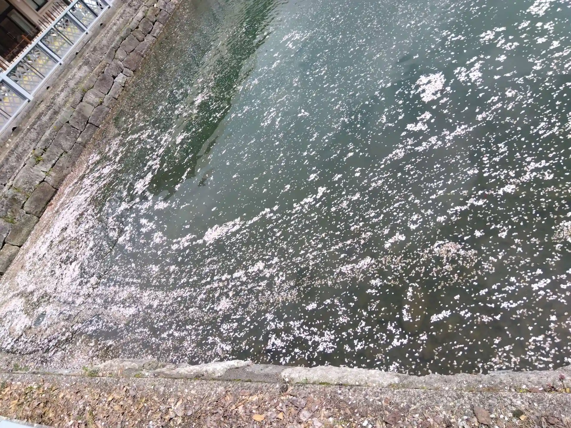 福井神社前のお堀の花筏を鯉がスイスイ🐟鳩はポロッポー🕊