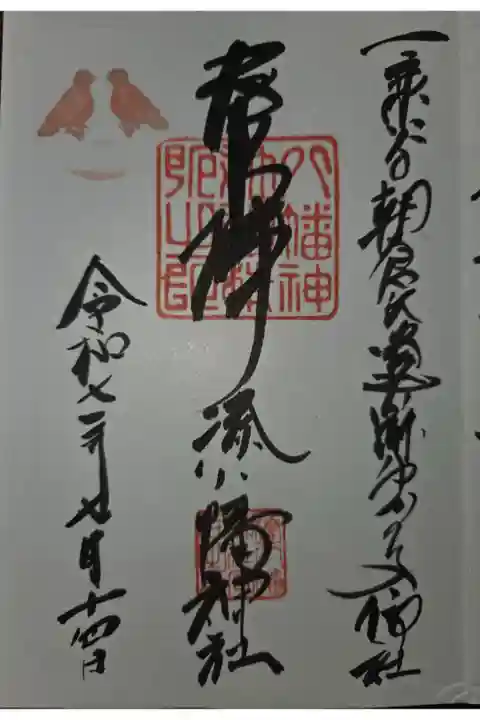いよいよ神社密集地帯に近付いてきました。正面鳥居は石段のある下り参道。神社正面には足羽川が流れ、堤防沿いは桜並木が続いています。脇鳥居から境内に入る事が出来、若干の駐車スペースが有りました。朝倉氏が一乗谷に築城の際に城戸内に宇佐八幡を勧請し創建され代々朝倉氏の庇護を受けていました。朝倉氏滅亡と共に一時荒廃しましたが、江戸時代、初代福井藩主松平秀康より代々藩主よりの信仰と崇敬を受けていました。社務所兼自宅でピンポンをし、ご丁寧な御朱印を戴きました。
