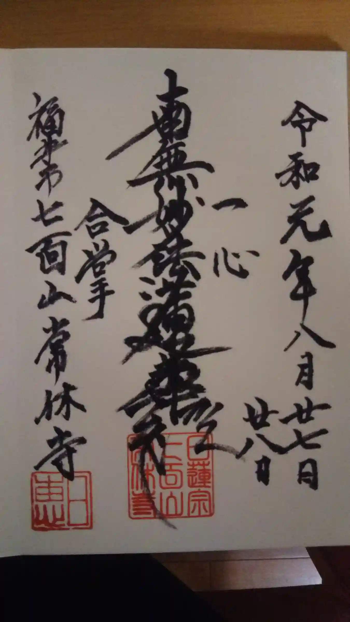 昨年9月以来の再訪で、直書き御首題をいただけました🖌️