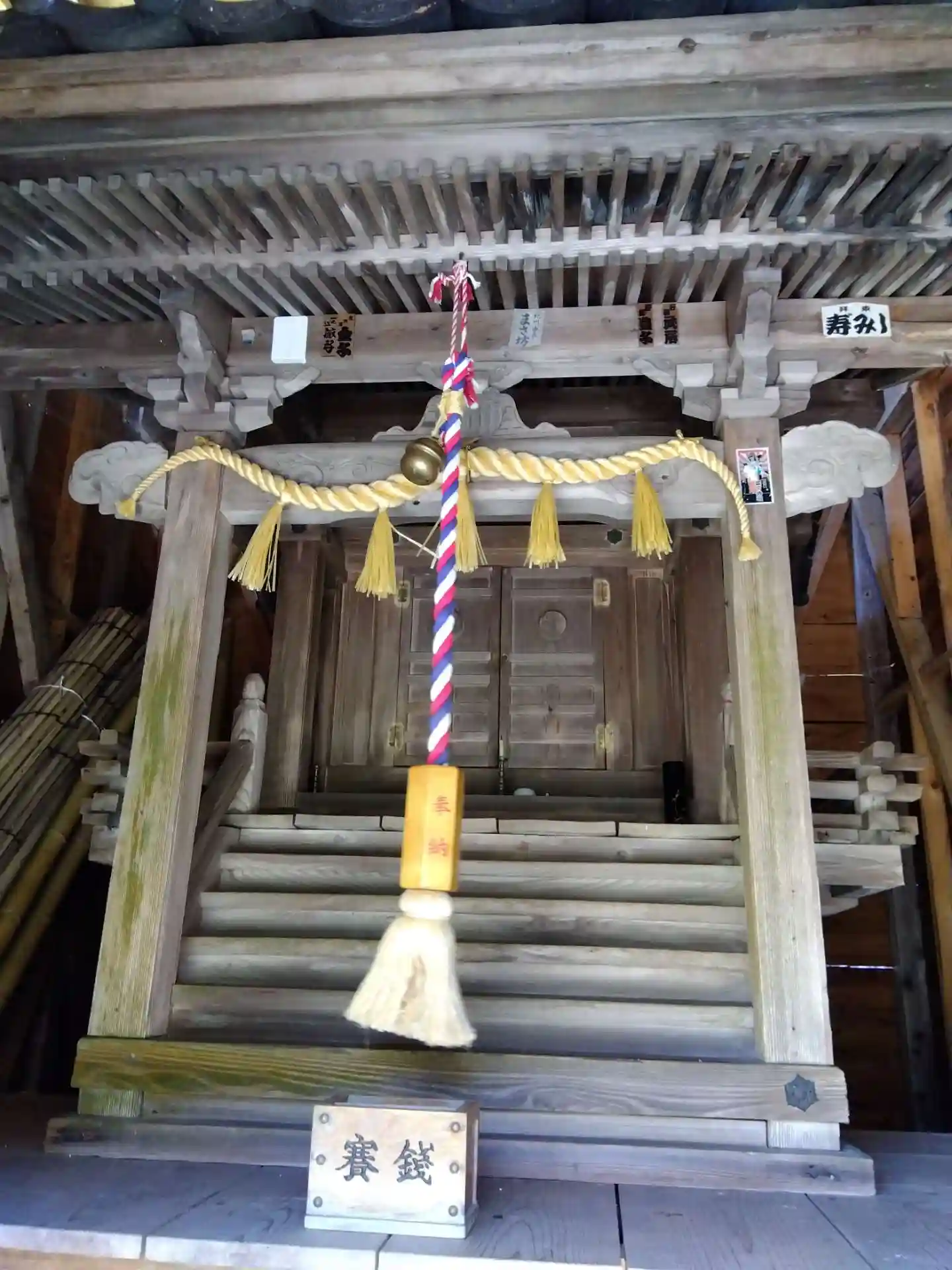 隙間から覆屋の中へ