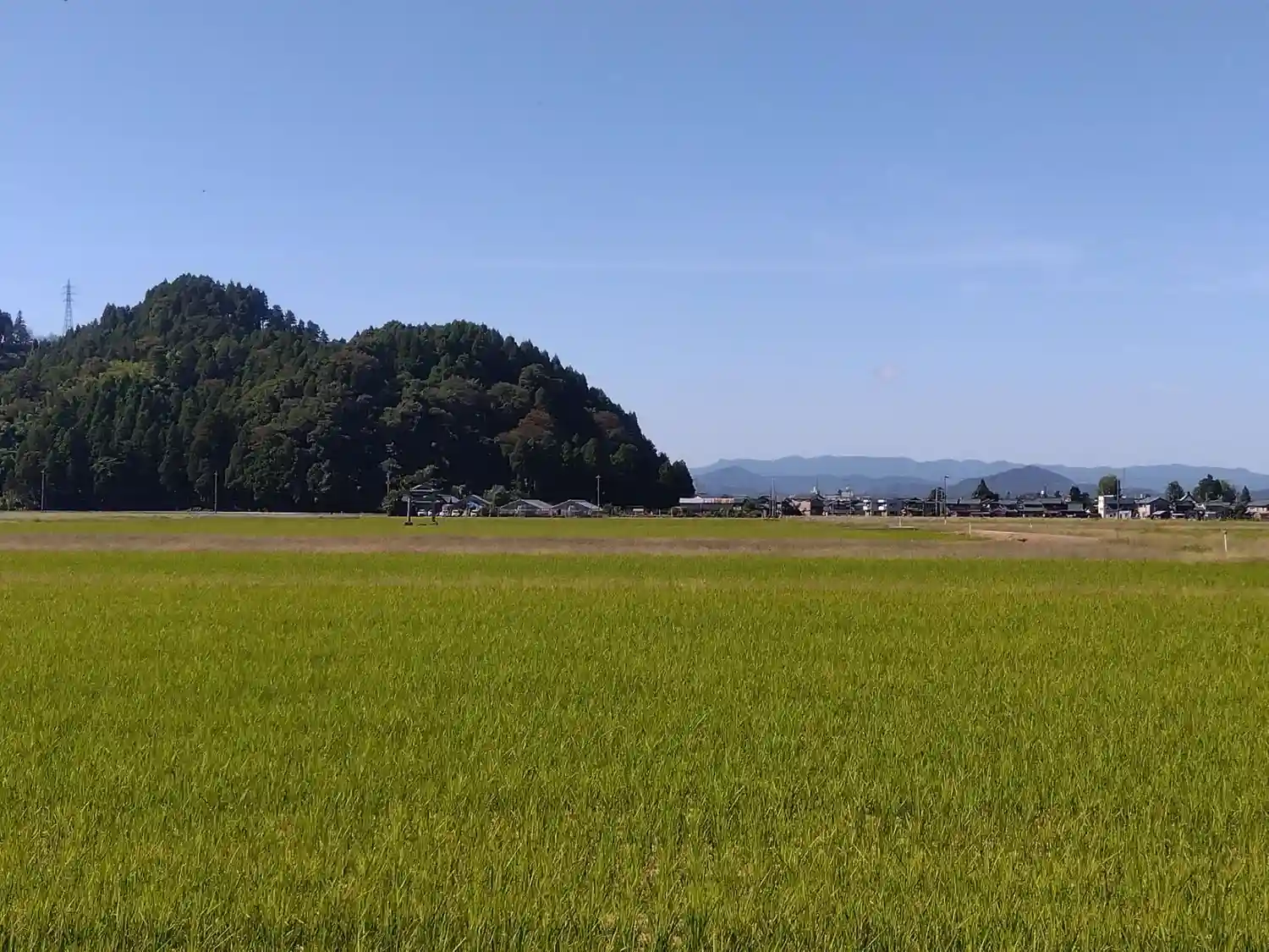 田んぼの中に鳥居が見えるかな?