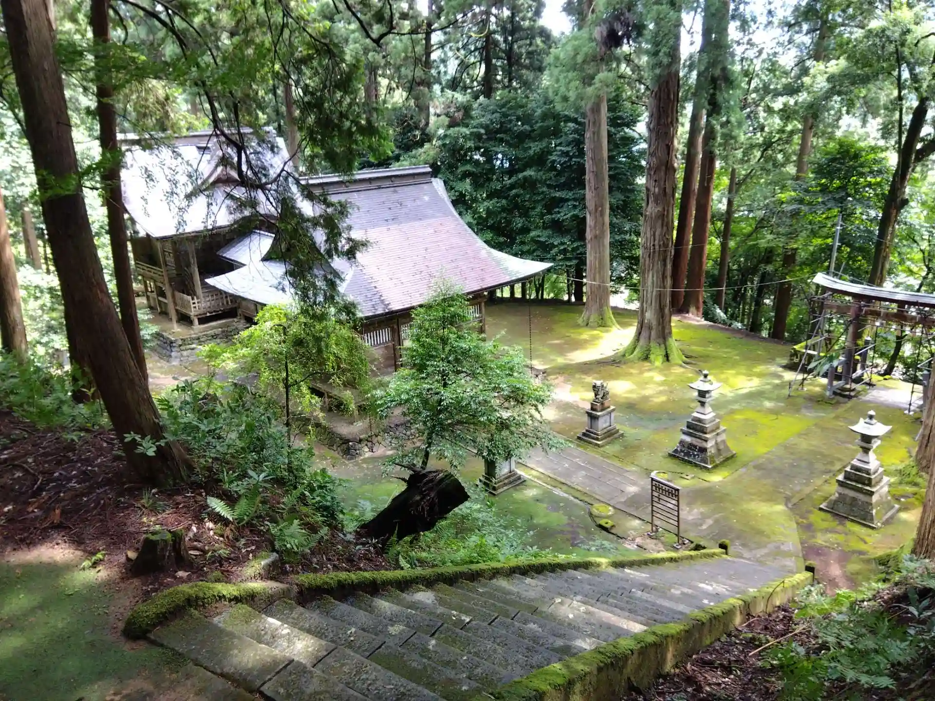 境内社から本殿を見下ろす