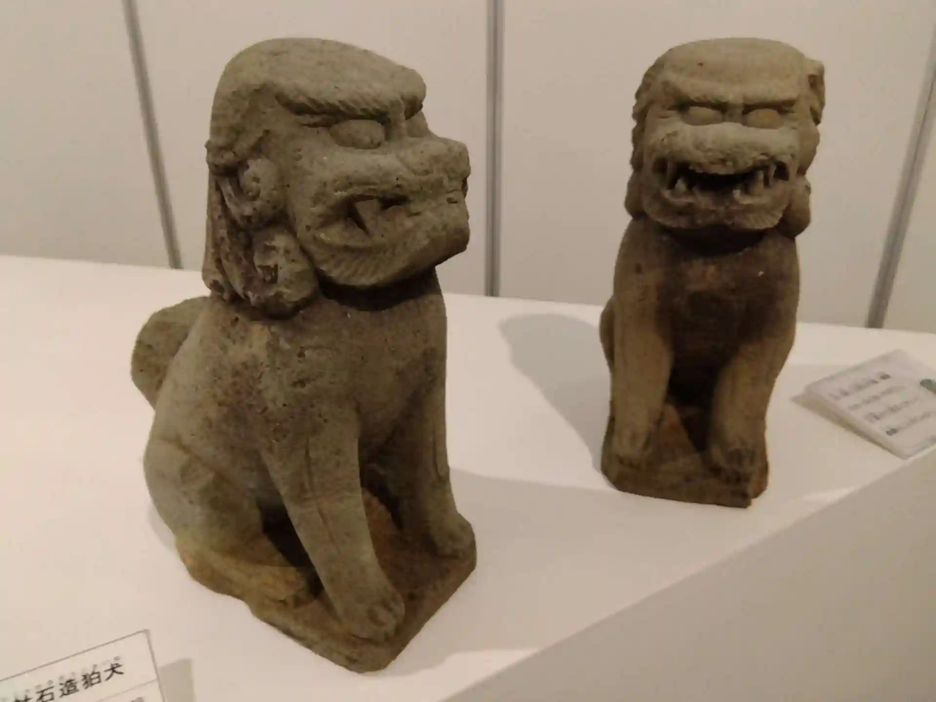展示狛犬は18世紀中期頃の笏谷石製。顔が全体のバランスからすると大きく、眉毛も特徴的とあります。