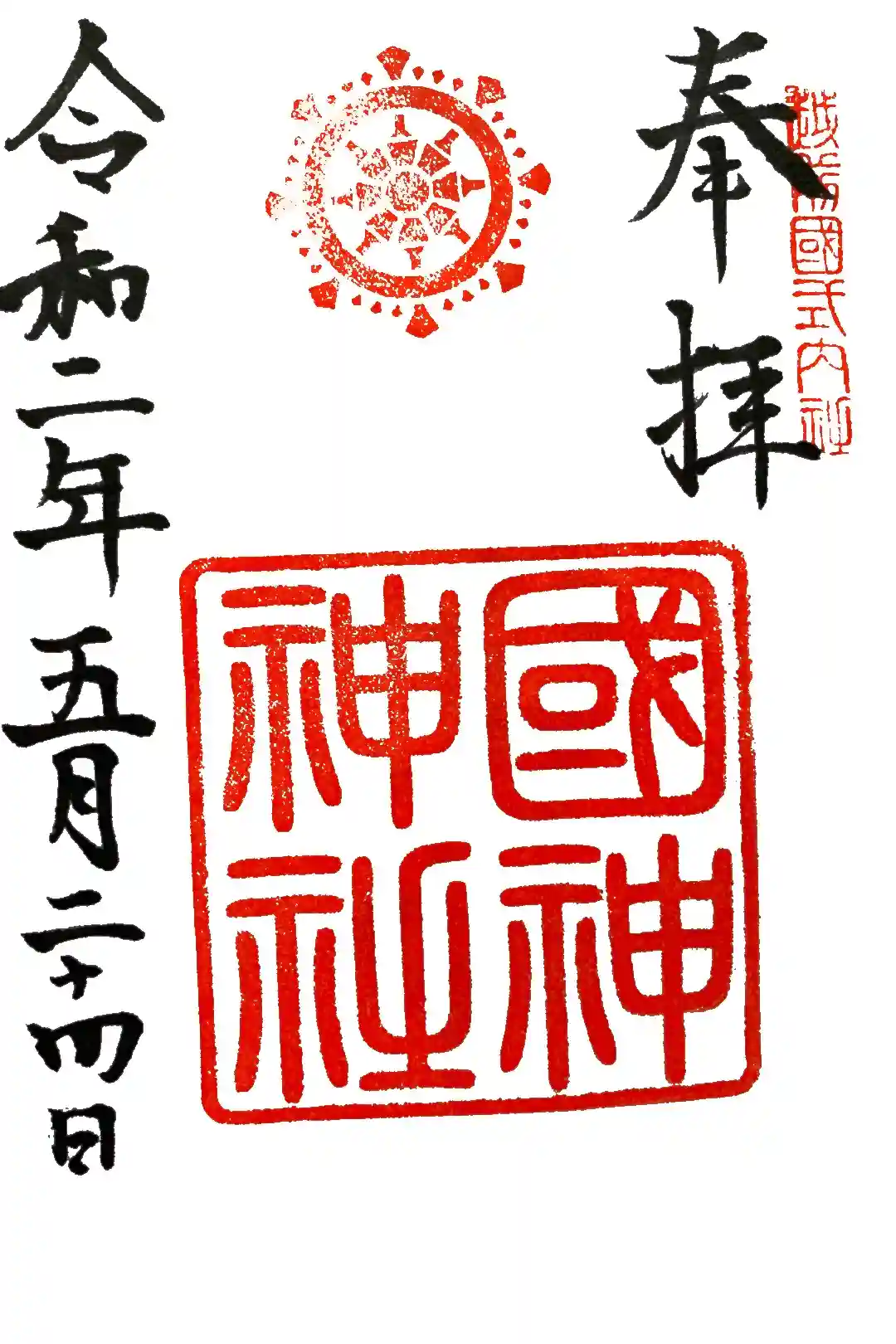 國神神社にお参りさせていただき、御朱印を頂けました。