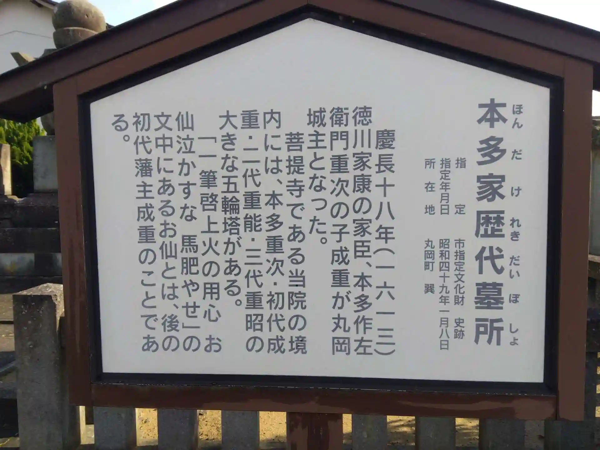 寛永元年(1624)、丸岡藩4万6千石が独立し本多家は初代藩主となりましたが、元禄8年(1695)にお家騒動により改易😵