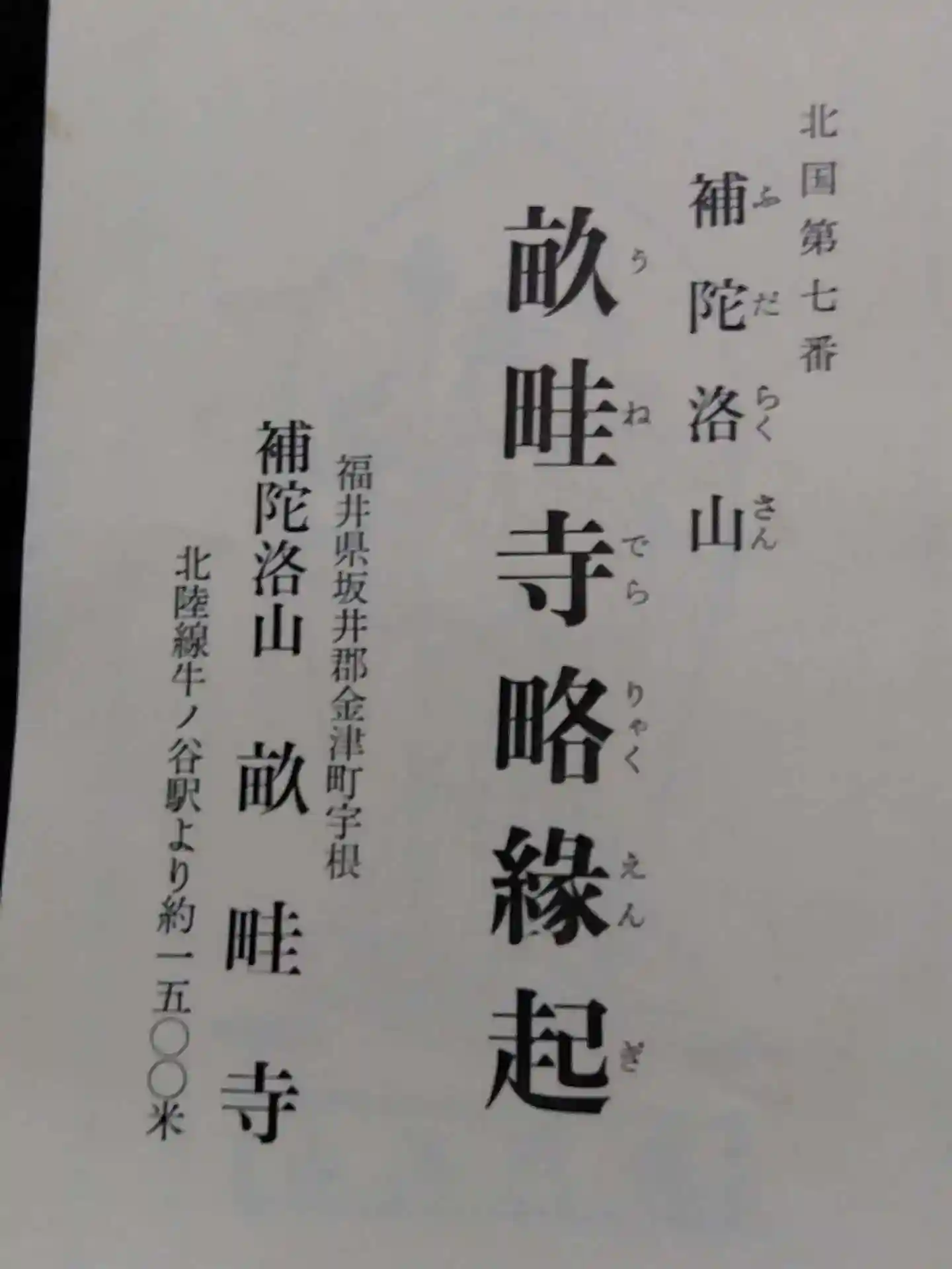 1寺目は、あわら市に在る補陀洛山…