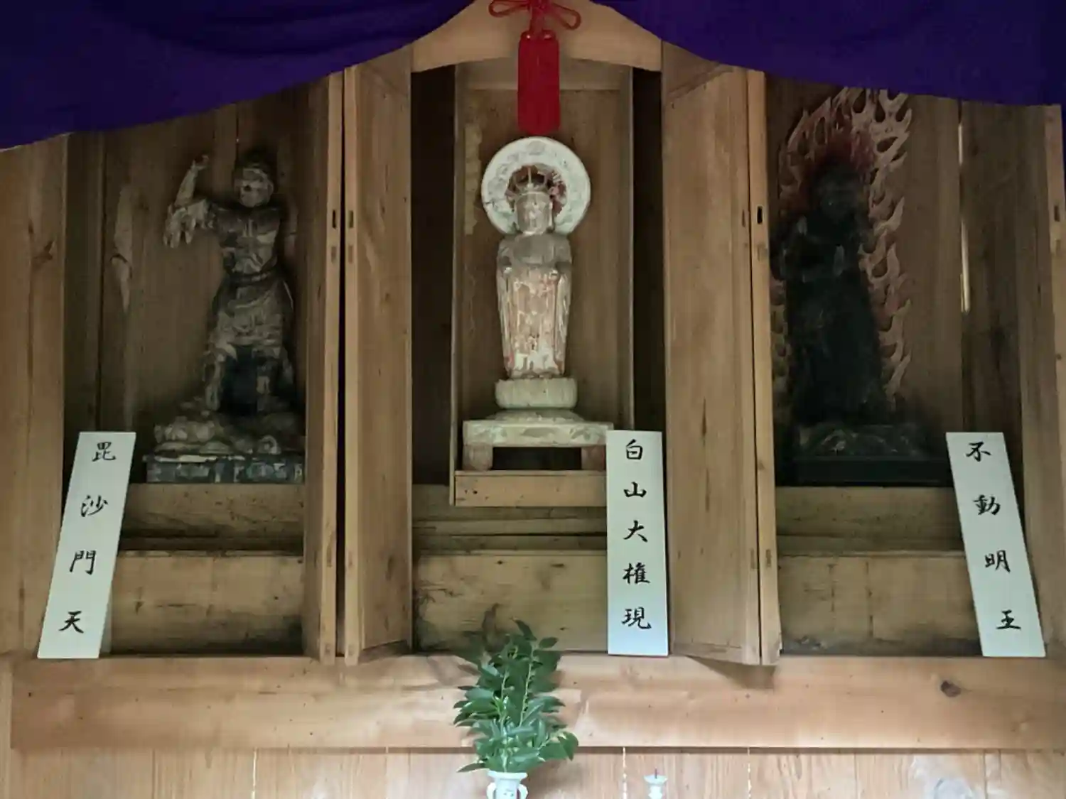 毘沙門天、白山大権現、不動明王