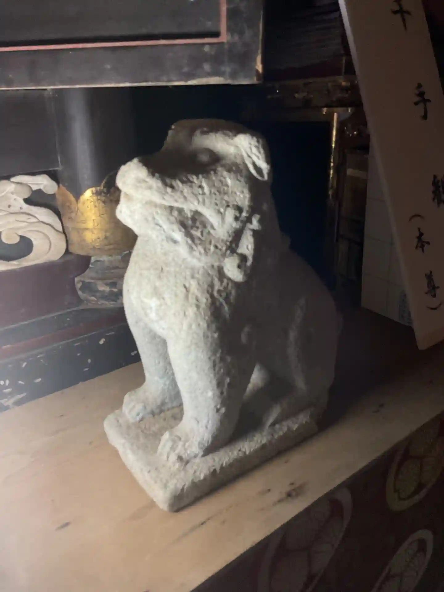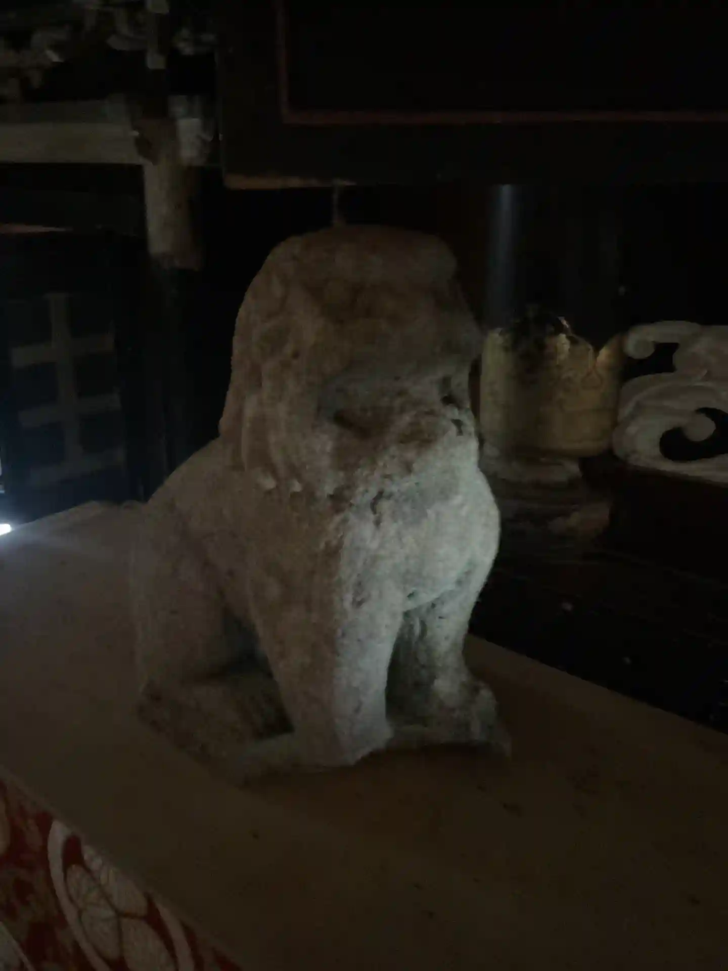 本尊前の狛犬さん、フラッシュ強すぎ😰