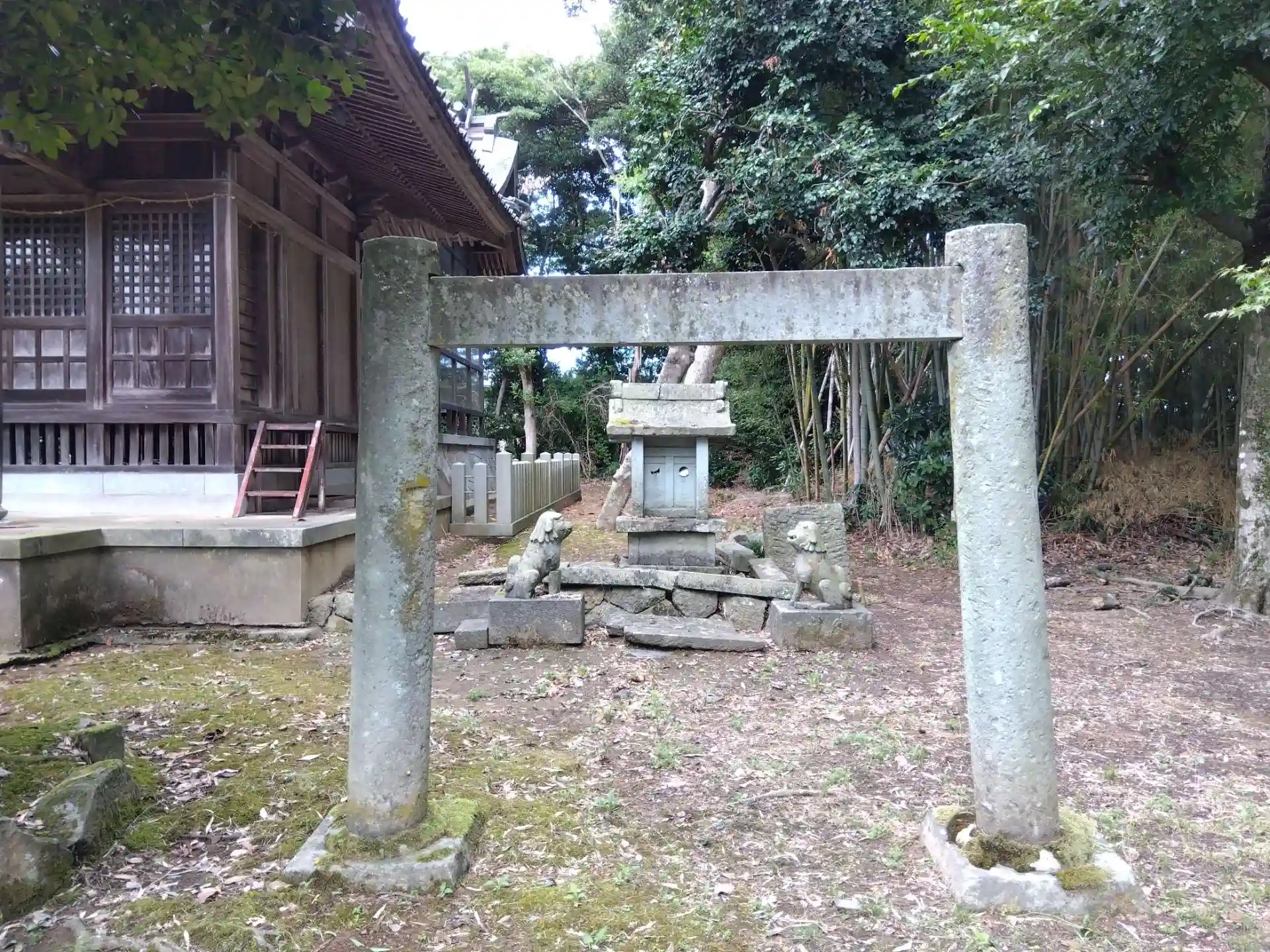 境内社に古い狛犬さんいます。